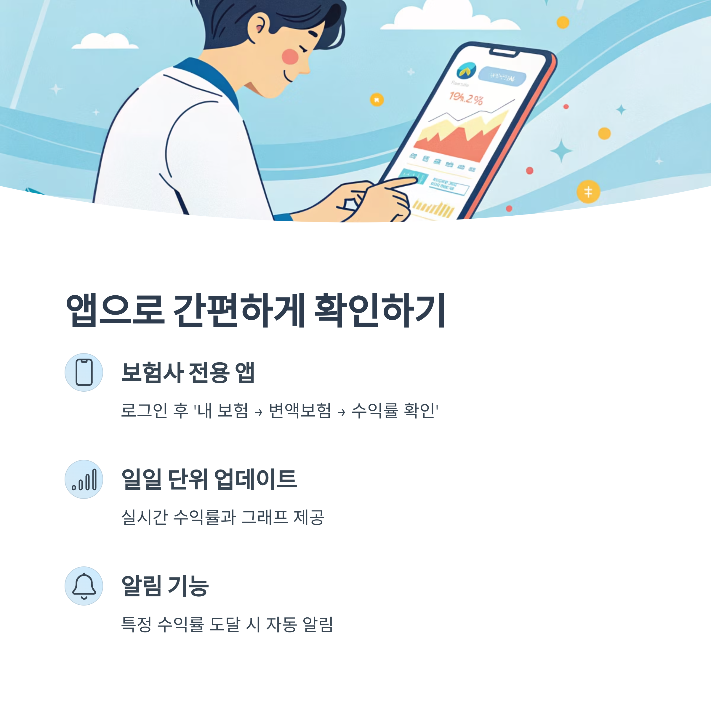 앱에 따라 차이는 있지만, 대부분의 앱에는 '내 보험 → 변액보험 → 수익률 확인'이라는 구조로 구성되어 있어 직관적이에요. 일부 앱은 알림 기능도 제공해서, 특정 수익률에 도달하면 자동으로 알려주는 기능도 있어요. 정말 편리하죠? 😄