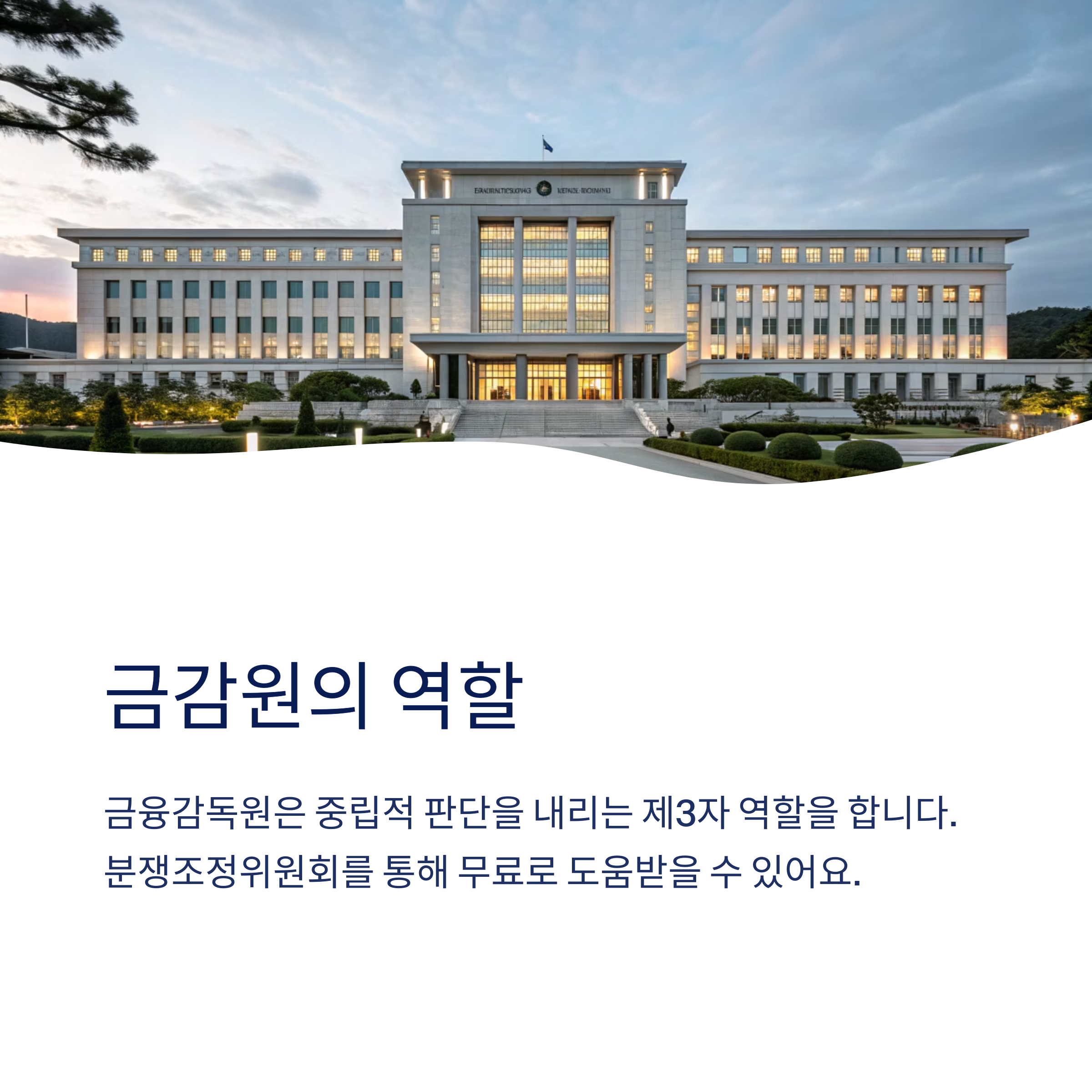 금융감독원은 금융소비자를 보호하기 위한 기관이에요. 보험금 분쟁이 발생하면 금융감독원 내 ‘분쟁조정위원회’에서 중립적인 판단을 내려줘요. 보험사와 소비자 중 어느 한쪽에 치우치지 않는 제3자 역할을 해주는 곳이죠.
