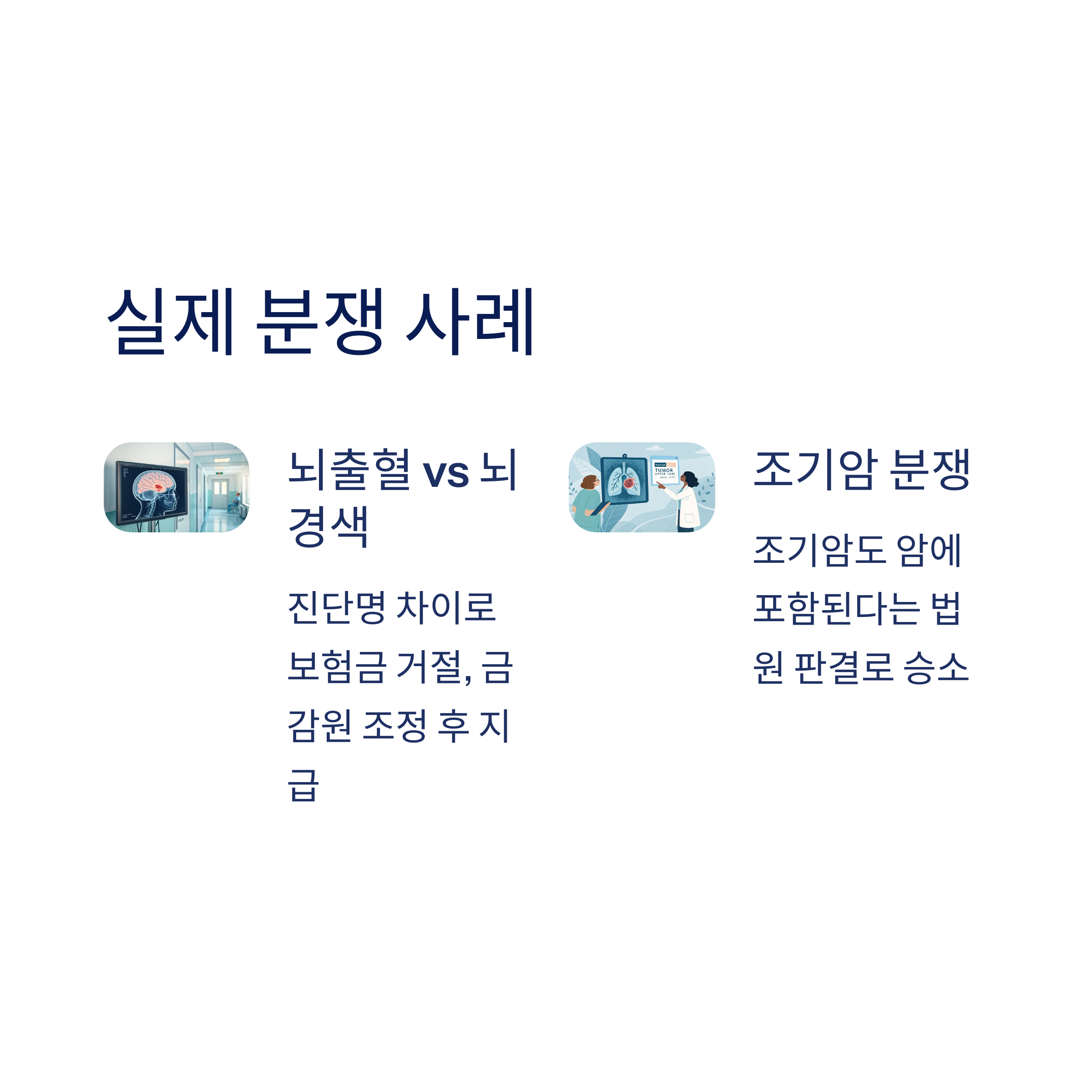 사례를 보면 보험금 분쟁의 생생한 현실을 잘 알 수 있어요. 첫 번째 사례는 뇌출혈로 쓰러진 50대 남성이었던 A씨 이야기예요. A씨는 실손의료보험에 가입되어 있었지만, 보험사는 뇌출혈이 아니라 뇌경색이라는 이유로 보험금을 지급하지 않았어요. 하지만 A씨는 입원하고 치료받은 사실이 분명했고, 결국 금융감독원에 민원을 제기해서 조정 끝에 보험금을 받을 수 있었어요.