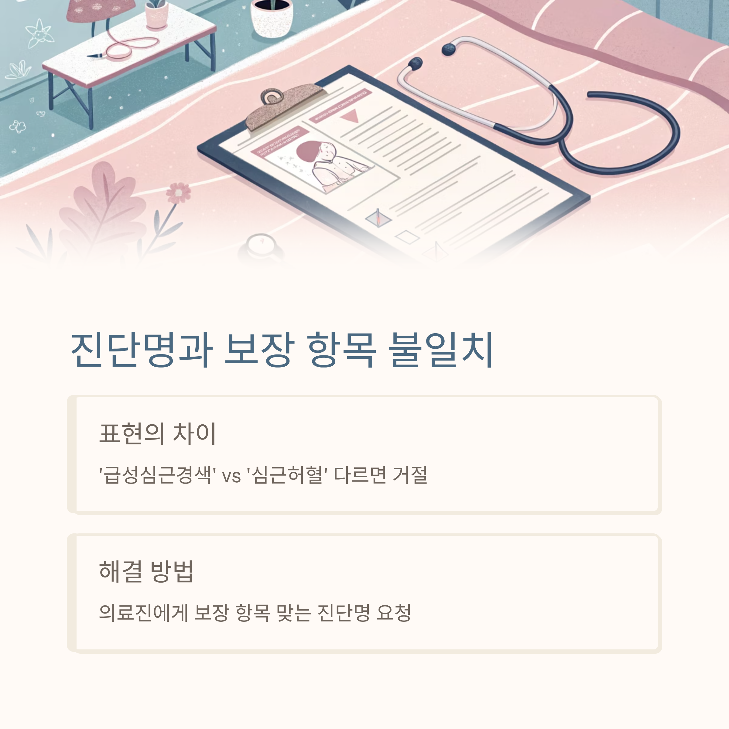 이런 경우에는 의료진에게 보장 항목에 맞는 진단명을 요청하는 것이 중요해요. 단순 오해에서 비롯된 경우라도 표현이 다르면 보장 범위에 해당하지 않는다고 판단될 수 있어요.