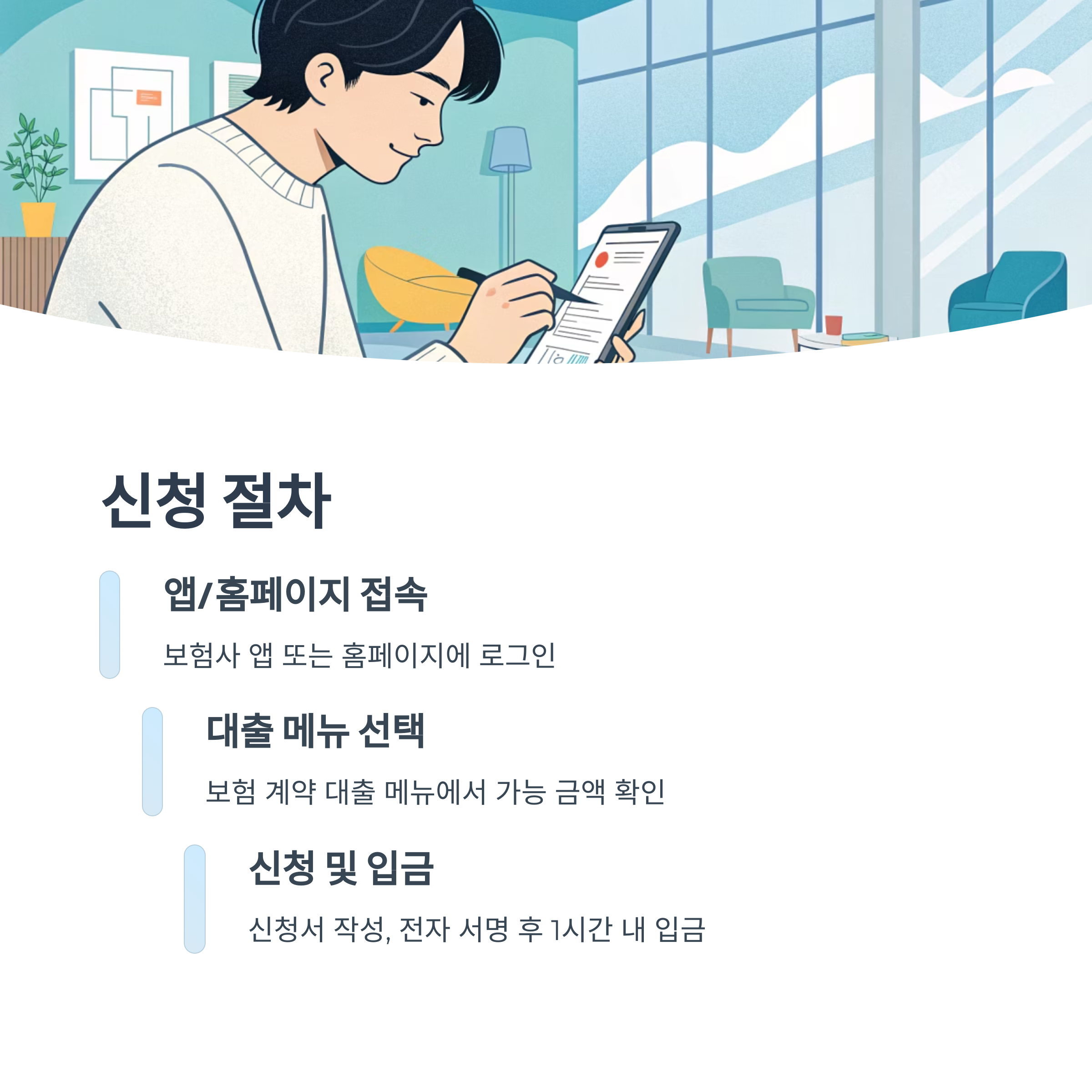 보험 계약 대출은 대부분의 보험사에서 비대면으로 신청할 수 있어요. 과정은 단순하고 순서도 명확해요. 아래처럼 진행하면 누구나 쉽게 신청할 수 있답니다!