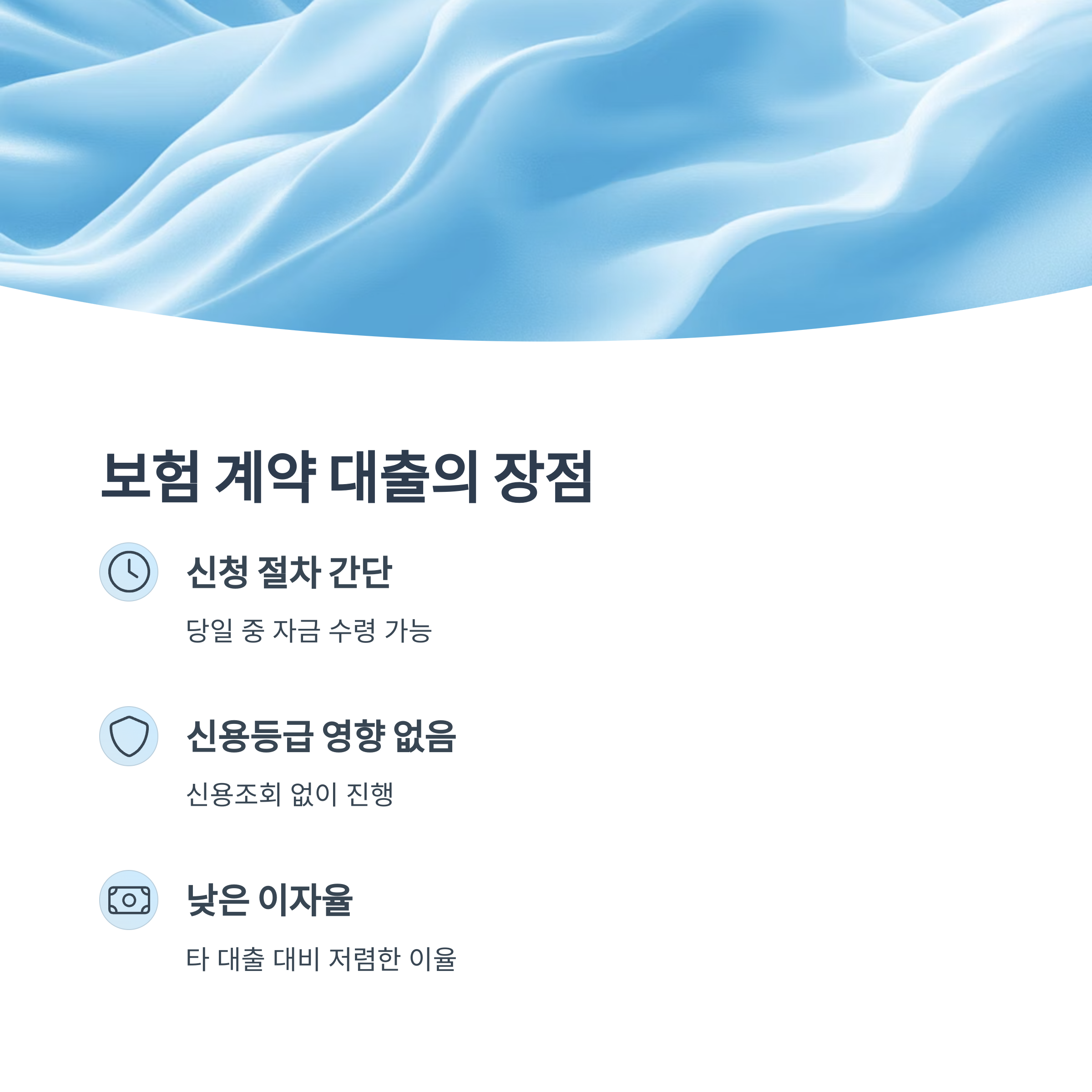 보험 계약 대출은 생각보다 많은 장점을 가지고 있어요. 우선, 대출 신청이 정말 간단하고 빠르다는 점이에요. 별도의 심사 과정 없이 본인의 보험 가입 여부만으로 대출이 가능하니, 당일 중으로 자금을 받을 수 있는 경우도 흔하답니다.
