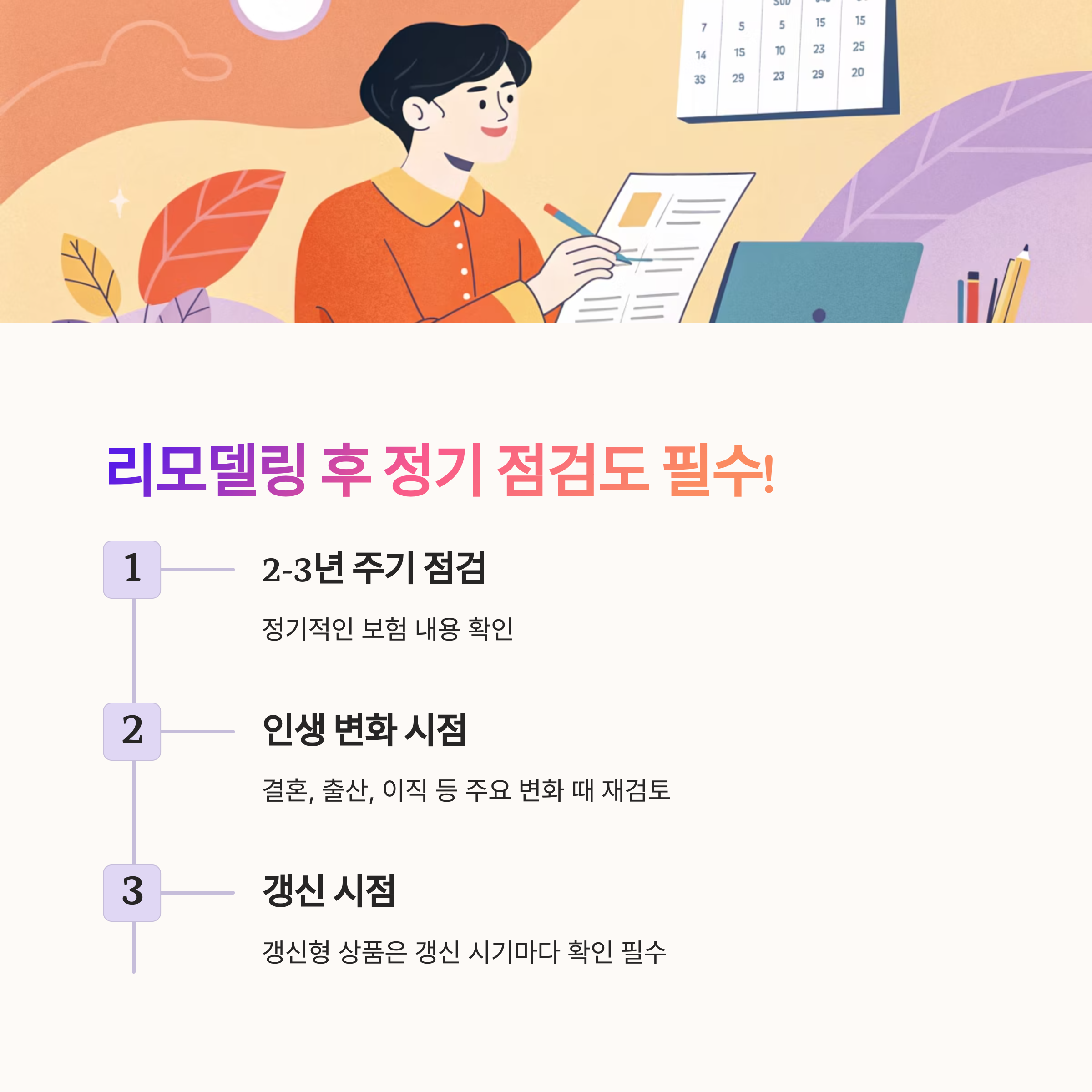 보험도 시간의 흐름에 따라 노후돼요. 그래서 정기적인 점검은 ‘리모델링 이후의 유지관리’라고 생각하면 이해하기 쉬워요. 🛠️
