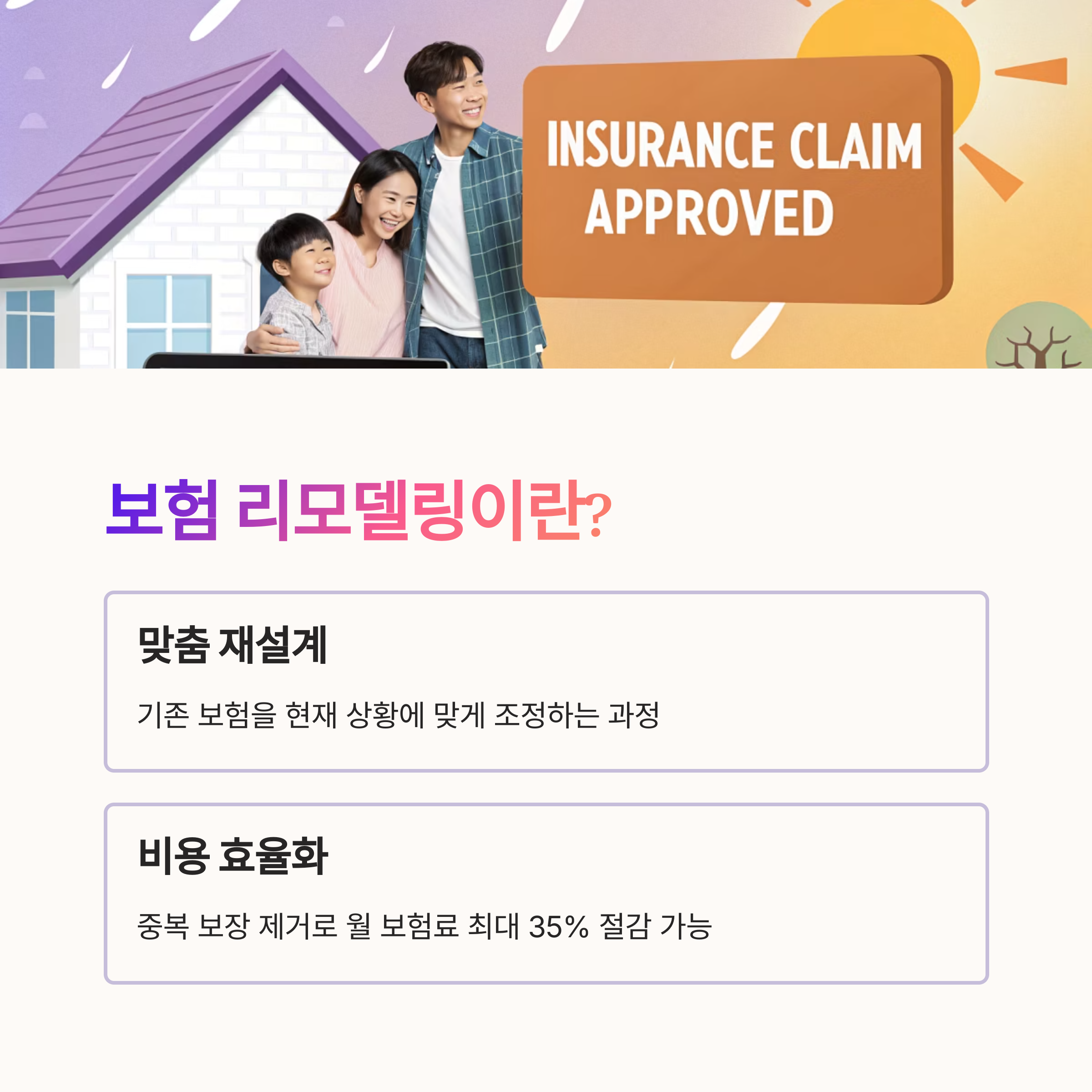 보험 리모델링은 단순히 보험을 해지하고 새로 가입하는 것이 아니에요. 현재 내 상황에 맞는 구조로 보험을 재구성하는 것이죠. 보장이 중복되거나 과도한 보험료를 내고 있는 경우, 불필요한 보험을 정리하거나 새로운 보장을 추가하는 방식으로 이루어져요.