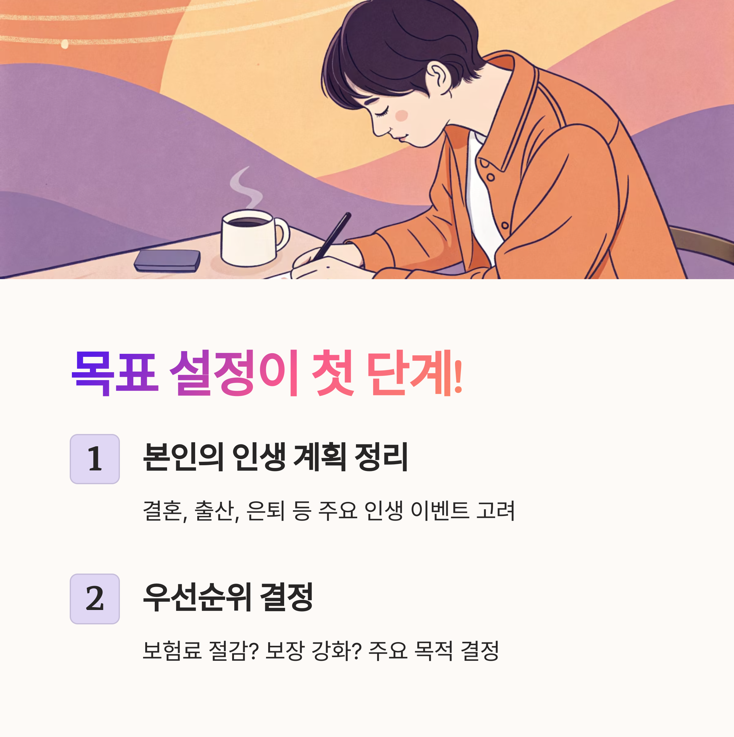목표가 명확하지 않으면 보험을 여러 개 가입하게 되면서 불필요한 중복이 발생하기 쉬워요. 상담사에게도 내 인생 계획과 보장 목적을 분명히 설명하는 것이 효과적인 리모델링으로 이어지는 비결이에요.