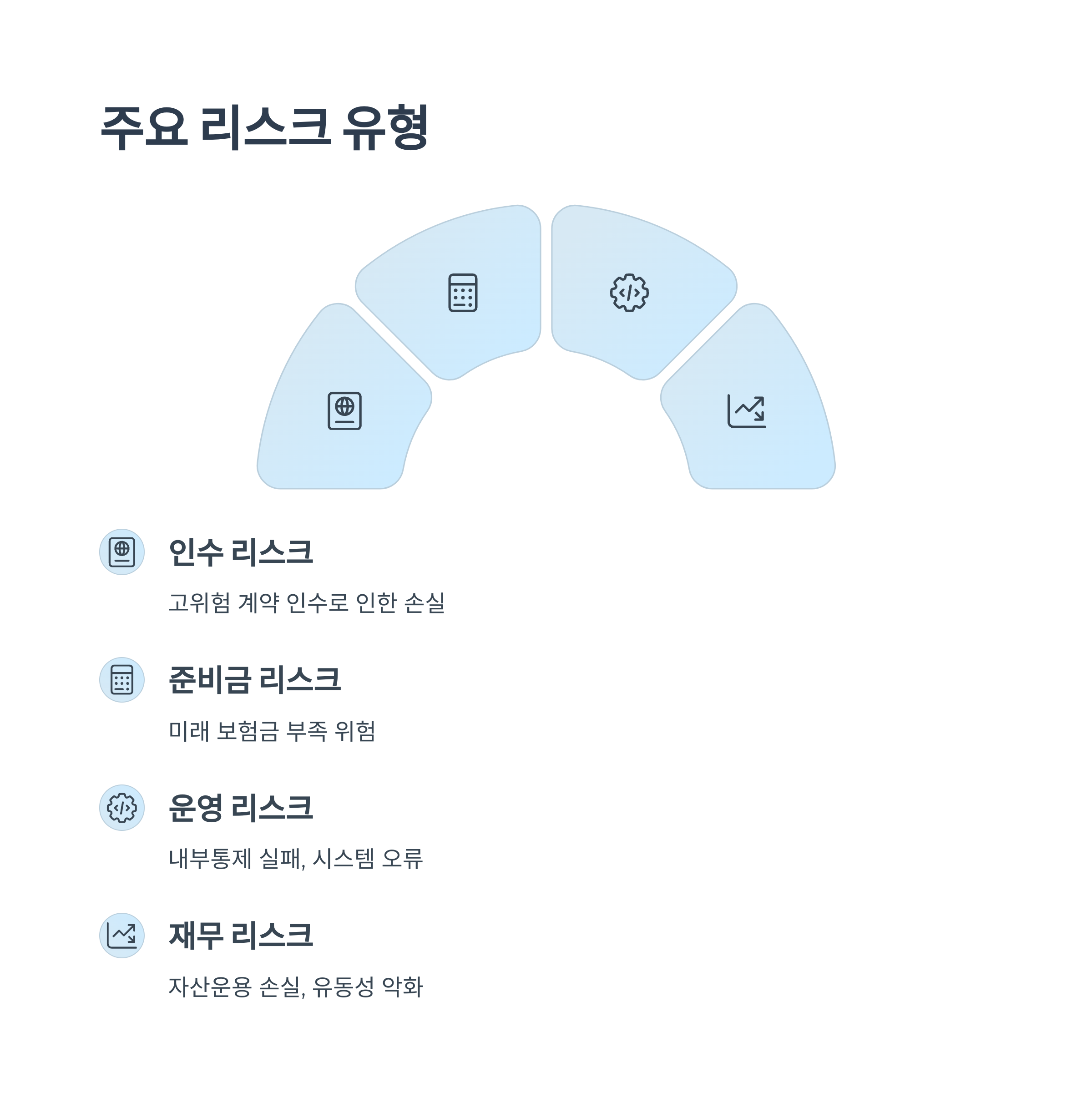 보험 리스크란 보험사가 계약자에게 약속한 보장을 제공하면서 직면할 수 있는 재무적, 운영적 손실의 가능성을 말해요. 즉, 보험사가 보상금을 지급하거나 자산을 운용하면서 예상치 못한 손해를 입을 수 있는 상황이죠.
