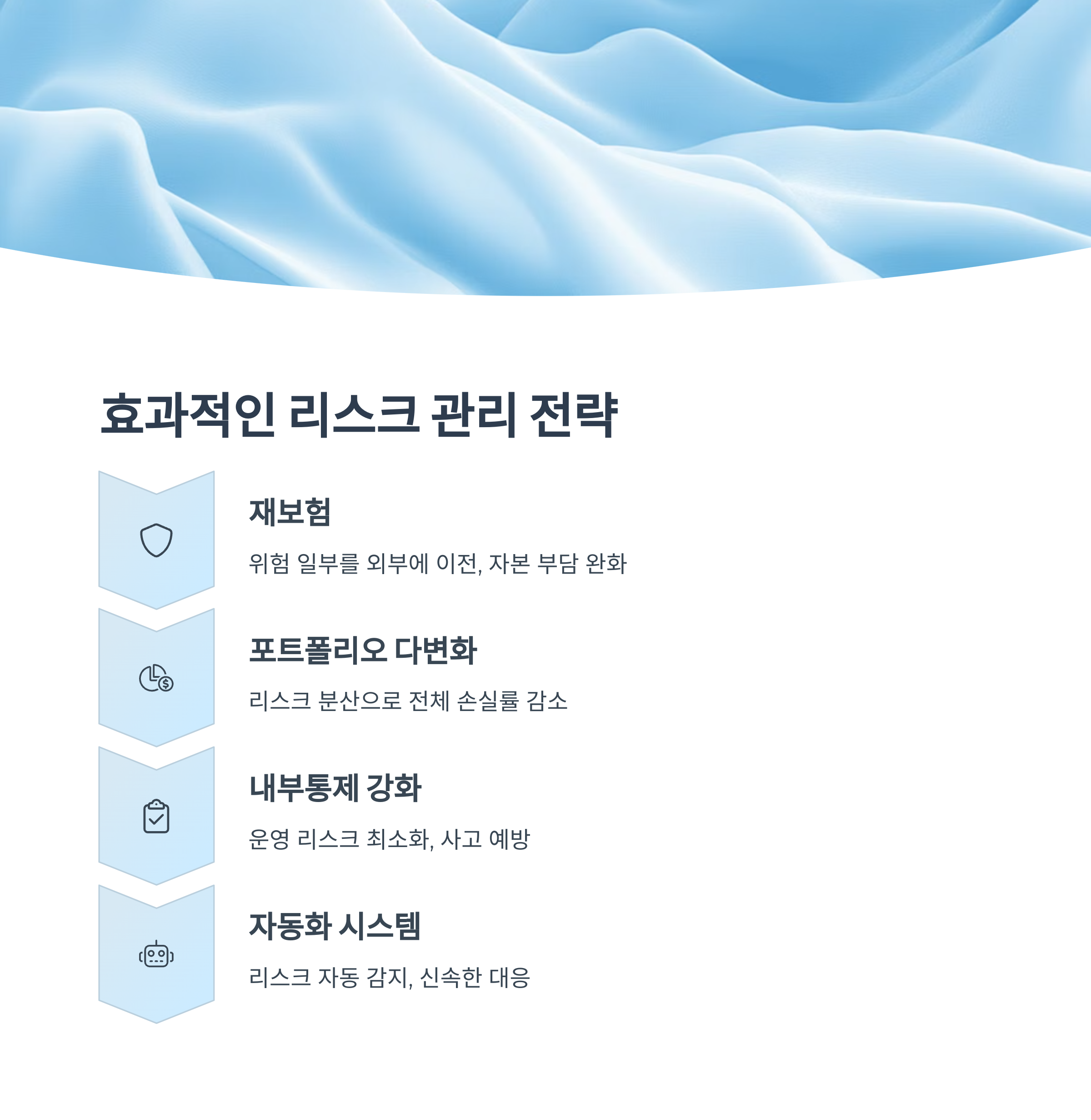 리스크를 인식하고 계량하는 것만으로는 충분하지 않아요. 중요한 건 그것을 '어떻게 관리하느냐'예요. 보험사는 다양한 전략을 통해 리스크를 회피하거나 이전하거나 완화하는 방법을 택하죠.