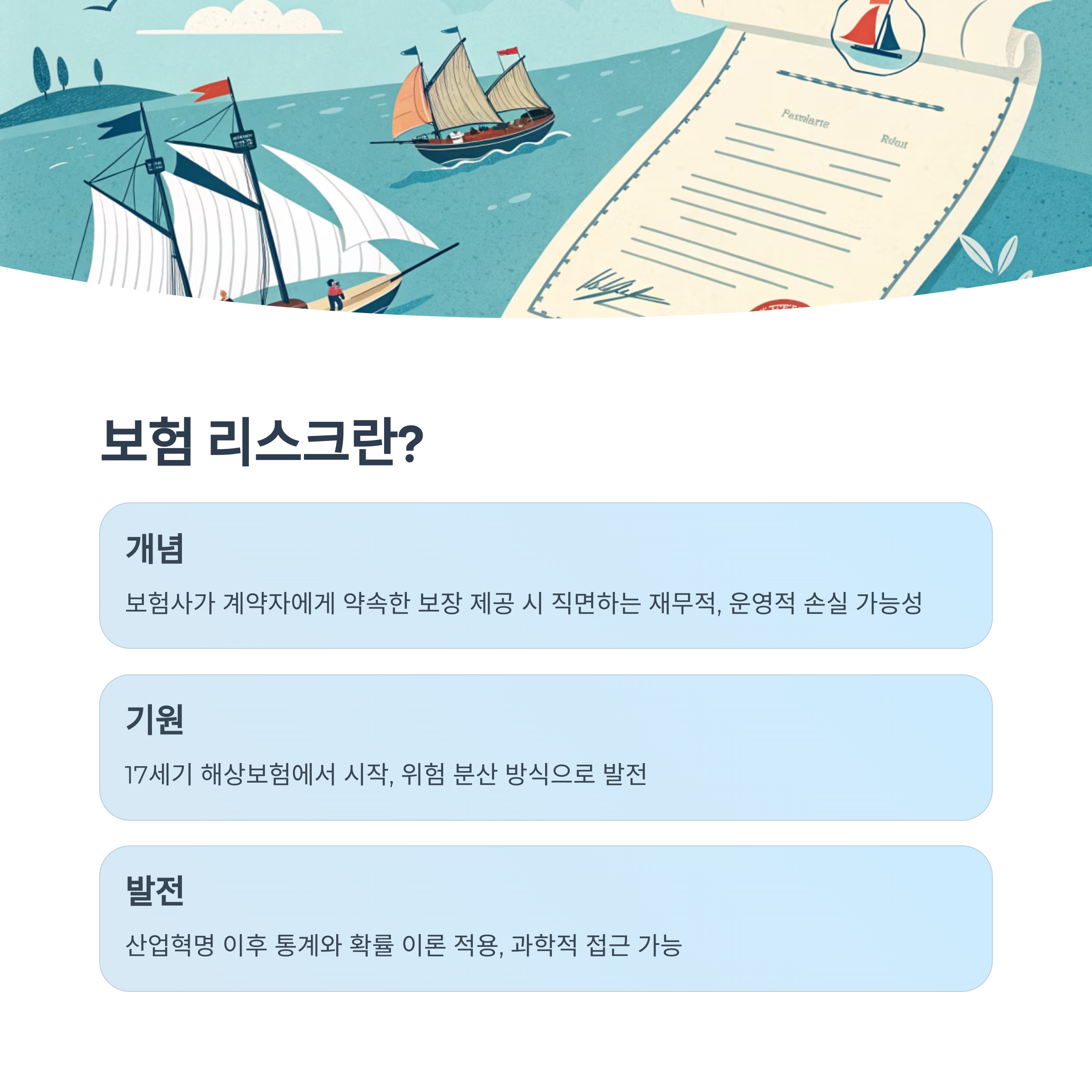 리스크 관리의 개념은 오래전부터 존재했지만, 보험 산업에서 체계적으로 다루어진 것은 17세기 해상보험에서 시작되었어요. 당시 상인들이 선박의 안전을 위해 일정 금액을 모아 위험을 분산하는 방식으로 보험의 시초가 시작되었답니다.
