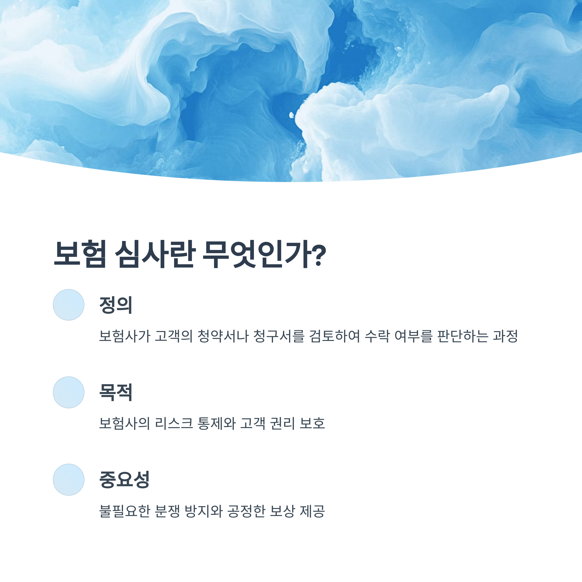 보험 심사는 보험사가 고객의 보험 청약서 또는 보험금 청구서를 검토하고, 수락 여부 또는 보험금 지급 적정 여부를 판단하는 과정이에요. 이 과정은 단순한 절차가 아니라 보험사의 리스크를 통제하고, 고객의 권리를 보호하는 중요한 역할을 해요.