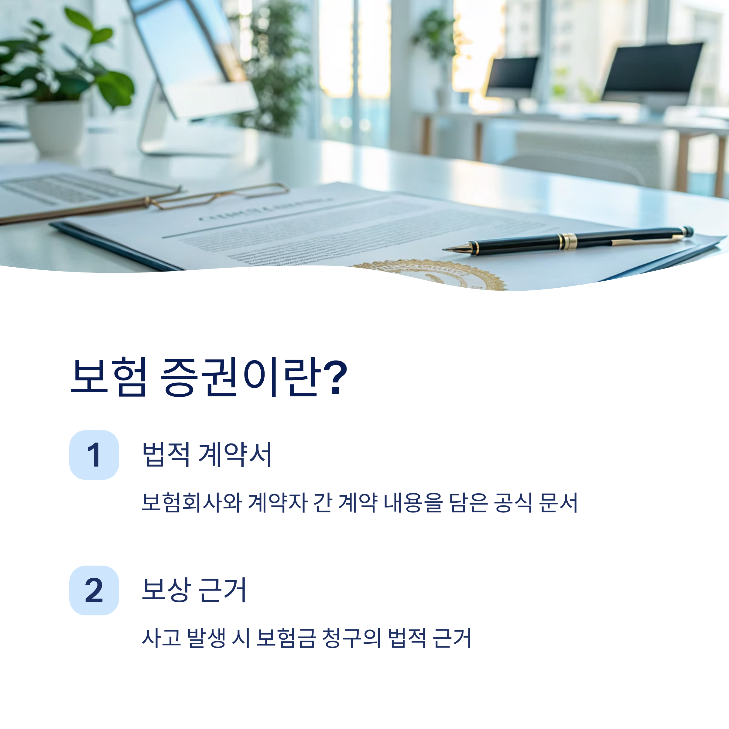 보험 증권은 보험회사와 보험계약자 간의 계약 내용을 기록한 서면 계약서예요. 법적으로 효력을 가지며, 보험 사고 발생 시 이 문서를 기준으로 보장 여부가 판단돼요. 즉, 사고가 났을 때 보험금을 청구할 수 있는 법적 근거가 바로 이 증권인 셈이죠.