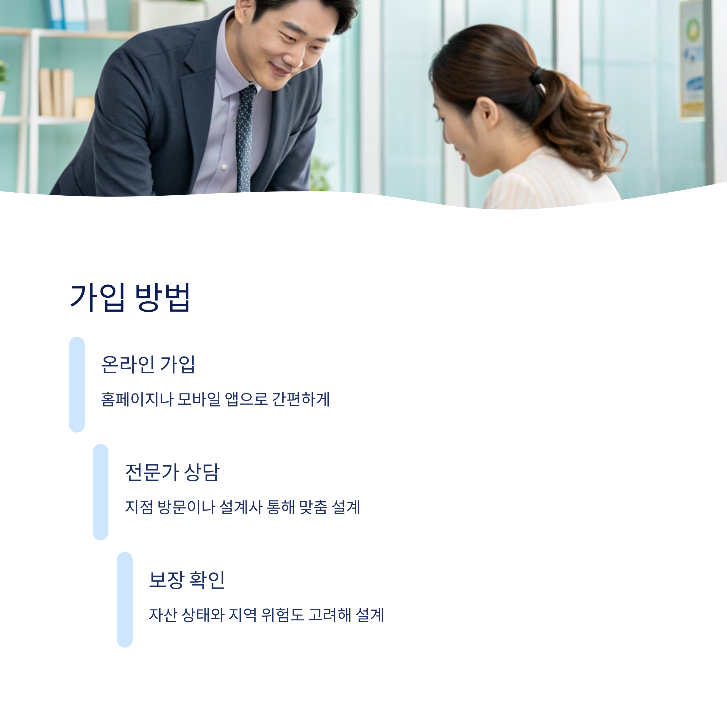 삼성화재 풍수해 보험은 누구나 쉽게 가입할 수 있어요. 가장 일반적인 방법은 삼성화재 홈페이지 또는 모바일 앱을 통해 온라인으로 직접 가입하는 방식이에요. 특히 요즘은 모바일 기반 가입자가 많아져서 본인 인증 후 몇 분 내에 설계부터 계약까지 한 번에 끝낼 수 있도록 간소화됐답니다.