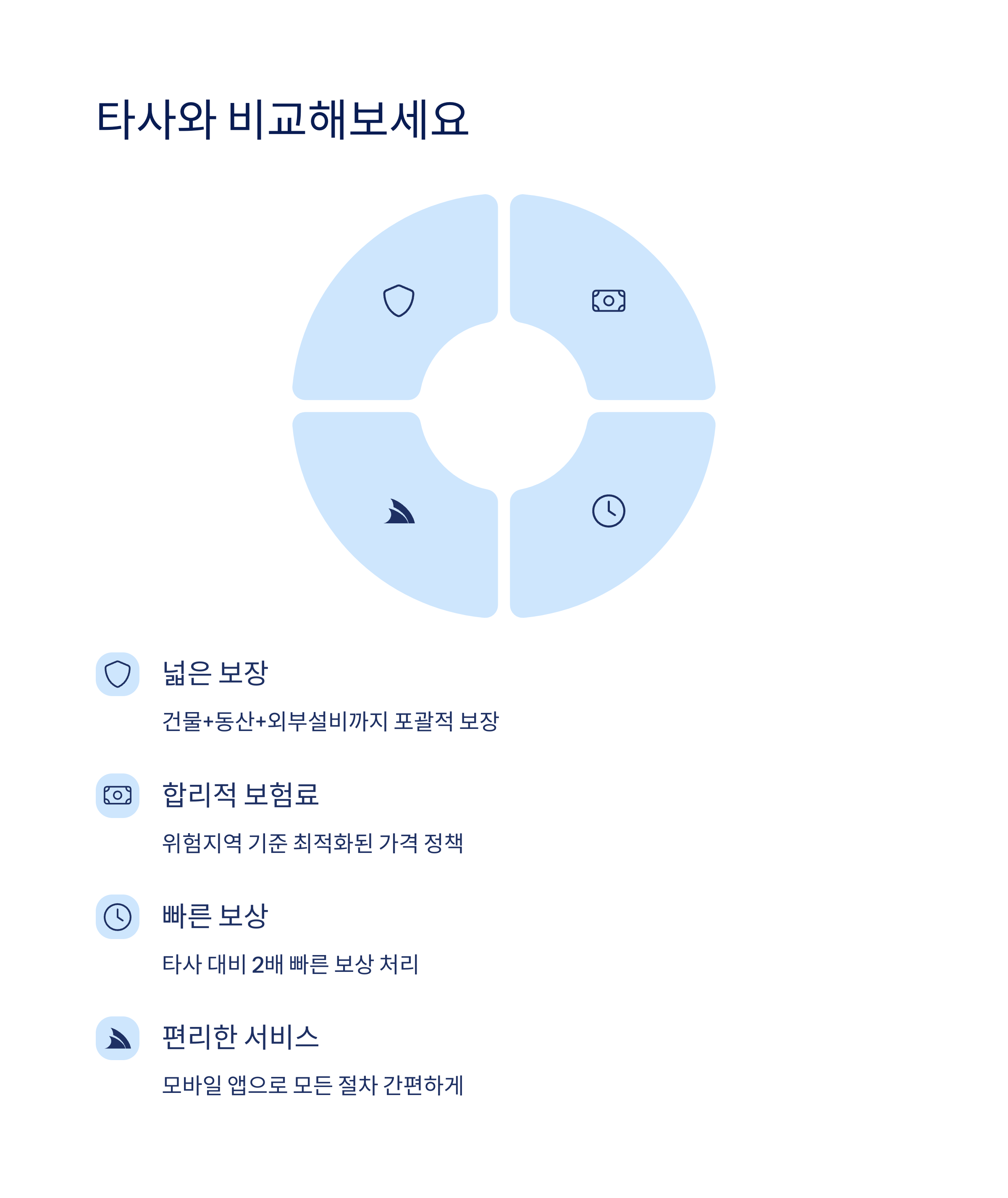 | 보험료 | 위험지역 기준 최적화 | 상대적 고가 | 보통 |