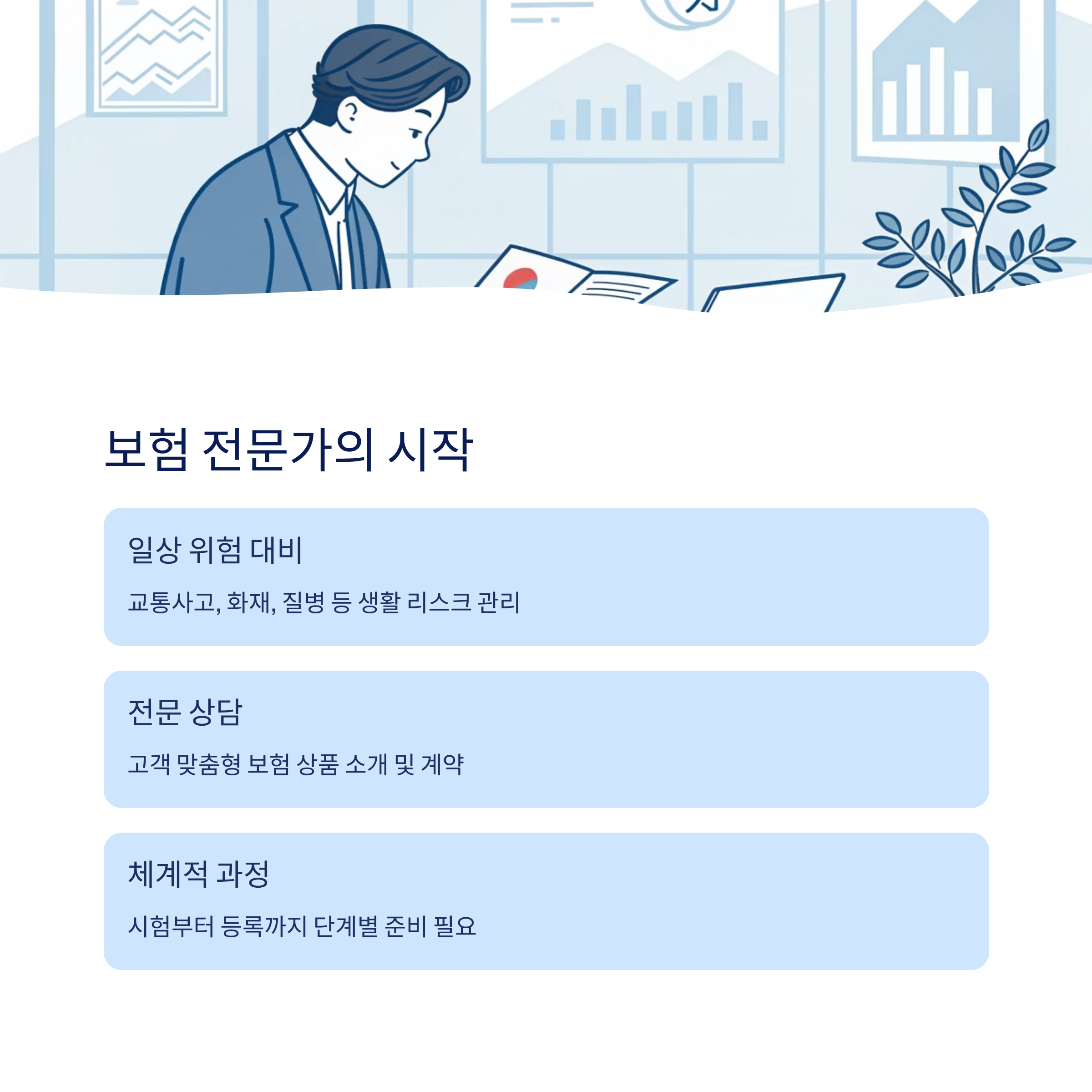 손해보험설계사는 교통사고, 화재, 질병, 재산 손실 등 우리 삶에 직접적인 영향을 주는 리스크에 대비해 보험 상품을 소개하고 계약을 체결하는 전문가예요. 특히 손해보험은 생명보험보다 훨씬 다양한 분야를 다루기 때문에 자격 취득 과정도 매우 체계적으로 되어 있답니다.