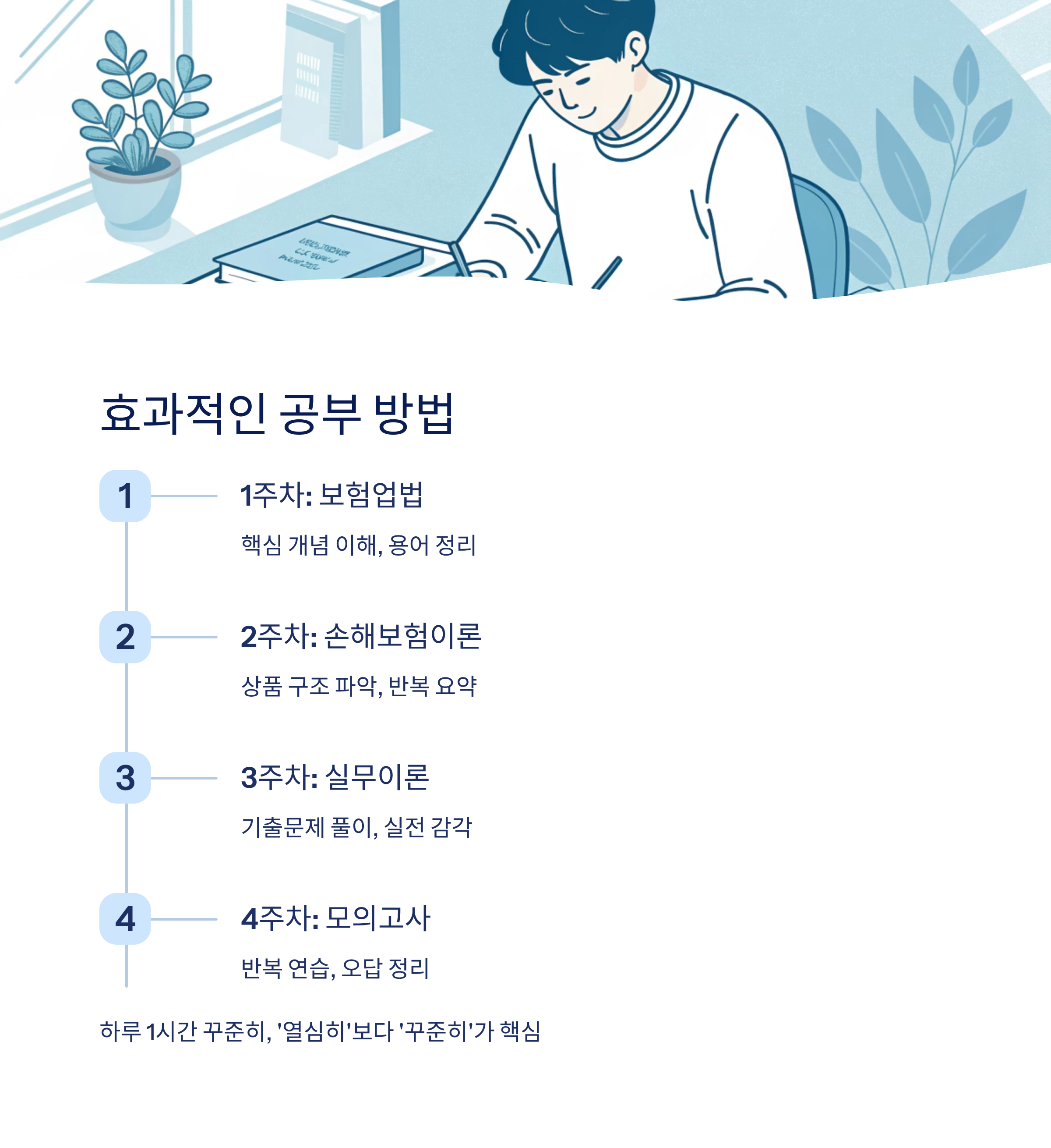 손해보험설계사 자격증은 시험 자체 난이도가 높은 편은 아니지만, 과목 수가 세 가지이고 실무 중심 내용이 많기 때문에 전략적으로 준비하는 것이 좋아요. 단순히 이론만 외우기보다는 실제 사례에 적용해보는 식으로 학습하는 게 훨씬 효율적이에요. 📚