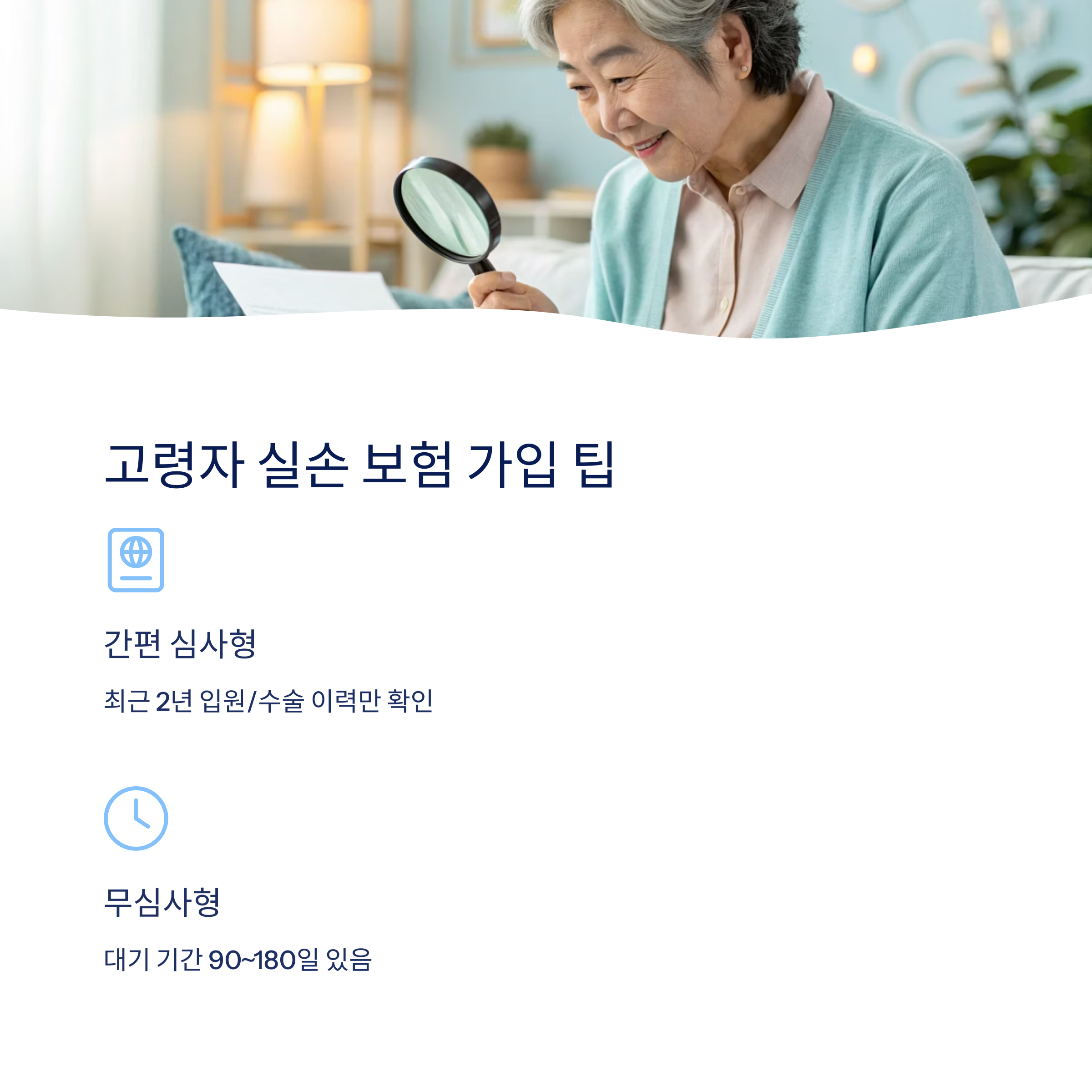 특히 고령자를 위한 실손 보험은 ‘심사 간소화형’으로 분류되기도 해요. 과거 병력이 있더라도 최근 2~5년 내 입원 치료나 수술이 없으면 상대적으로 쉽게 가입할 수 있어요. 하지만 이런 상품은 보장 한도가 작고, 보험료가 높다는 단점이 있어요.