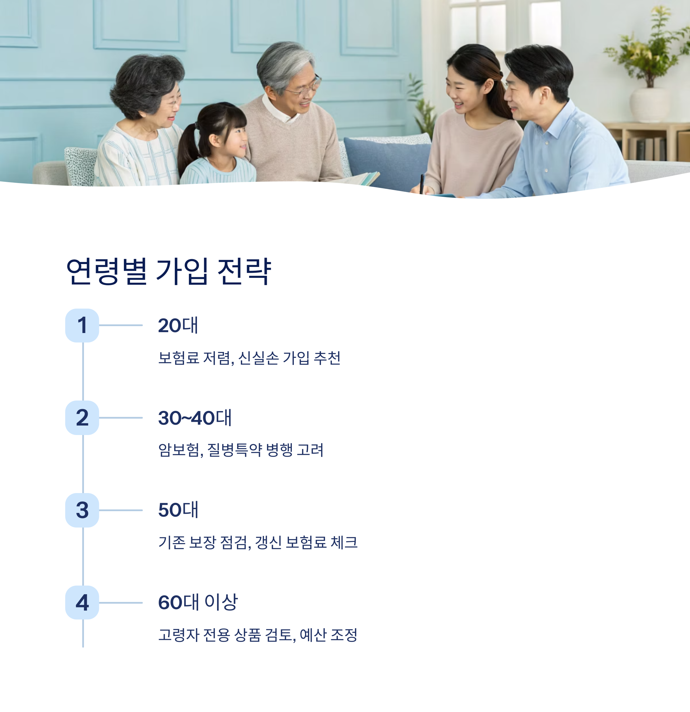 | 20대 | 보험료 저렴, 심사 유리 | 신실손 가입, 병력관리 |