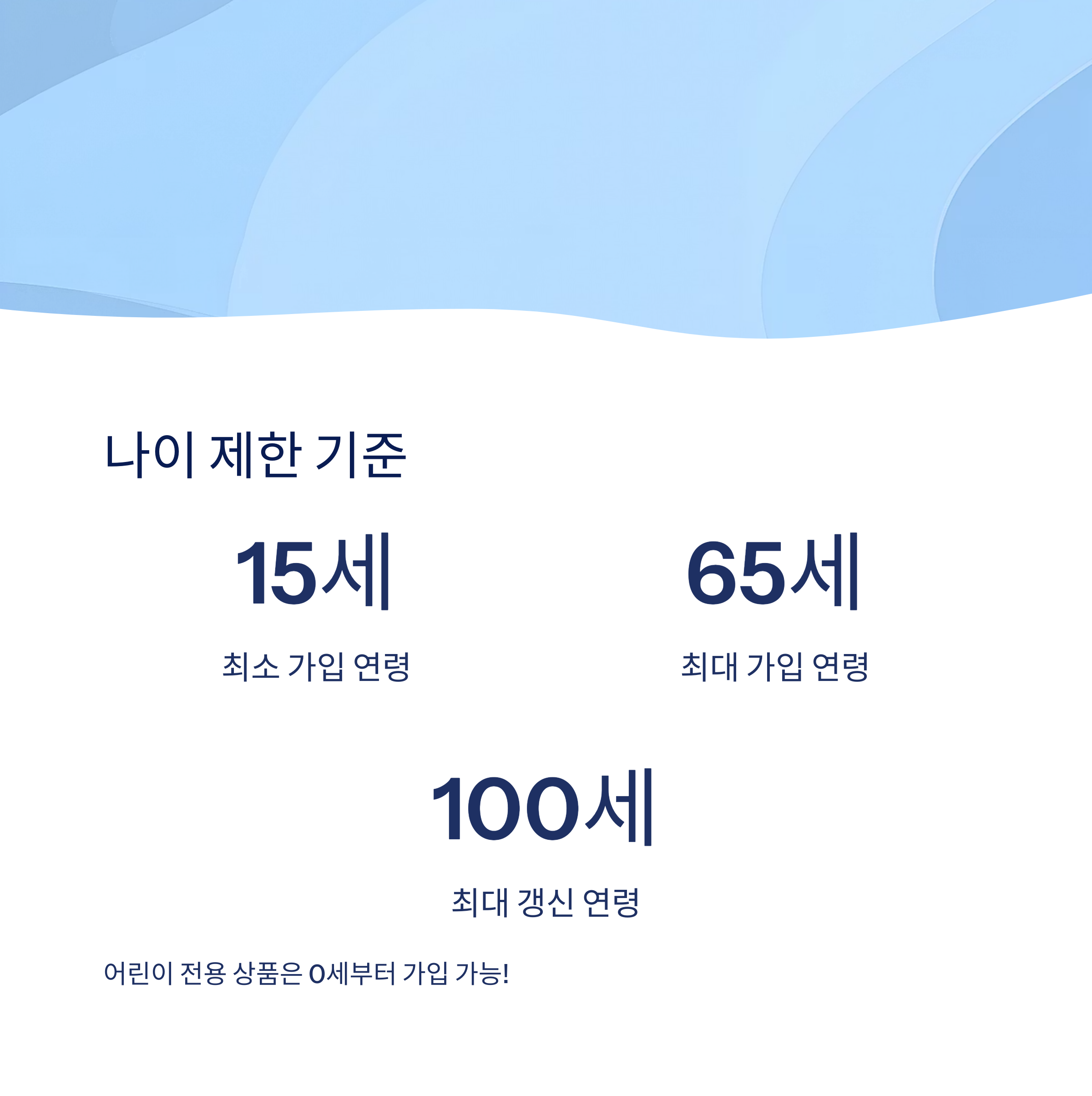 | 표준형 실손 | 15세 | 65세 | 신규 가입 기준 |