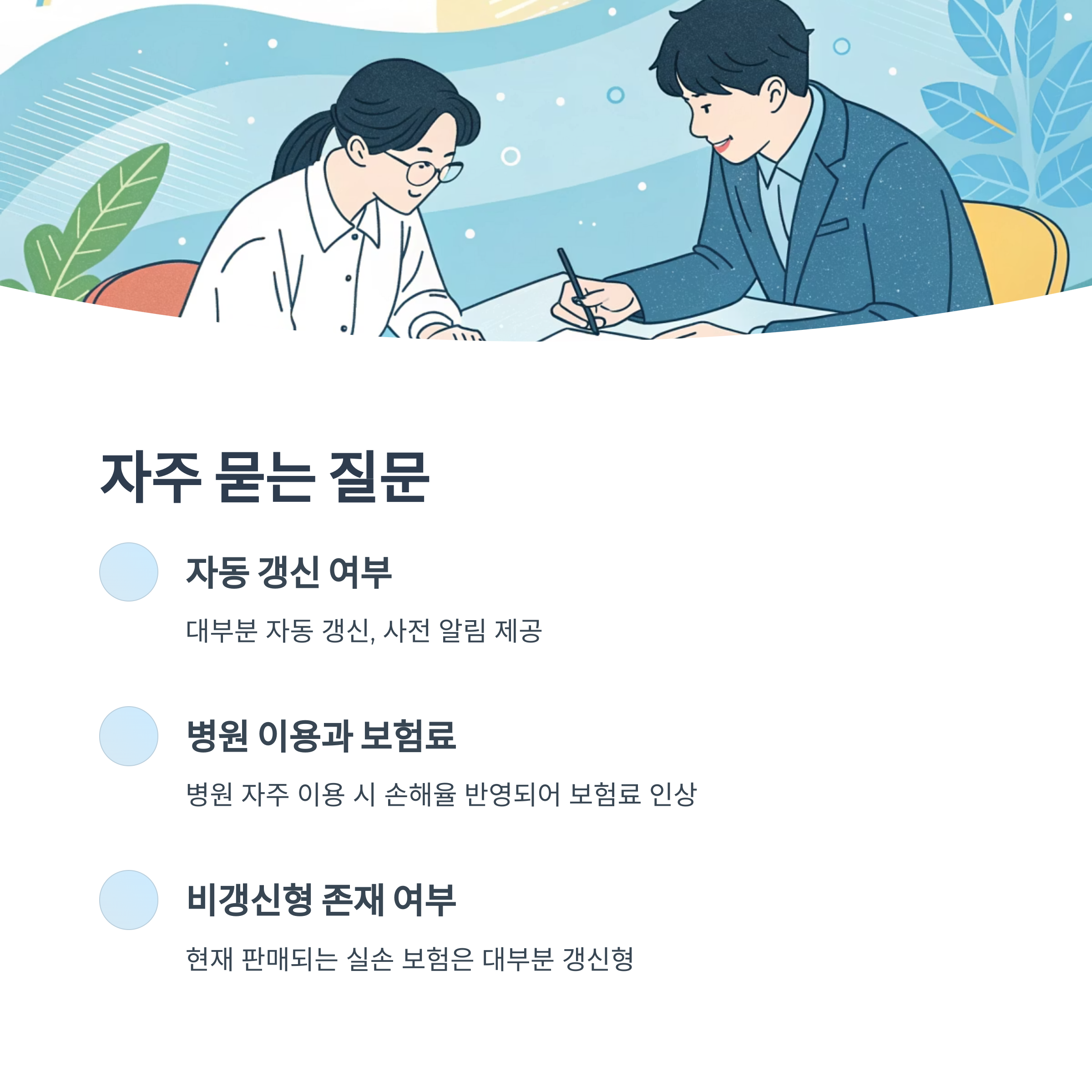 그래서 실손 보험에 가입할 때는 무조건 갱신 조건과 주기를 살펴봐야 해요. 이 정보가 보험의 '실질적인 가격'을 결정한다고 해도 과언이 아니니까요.