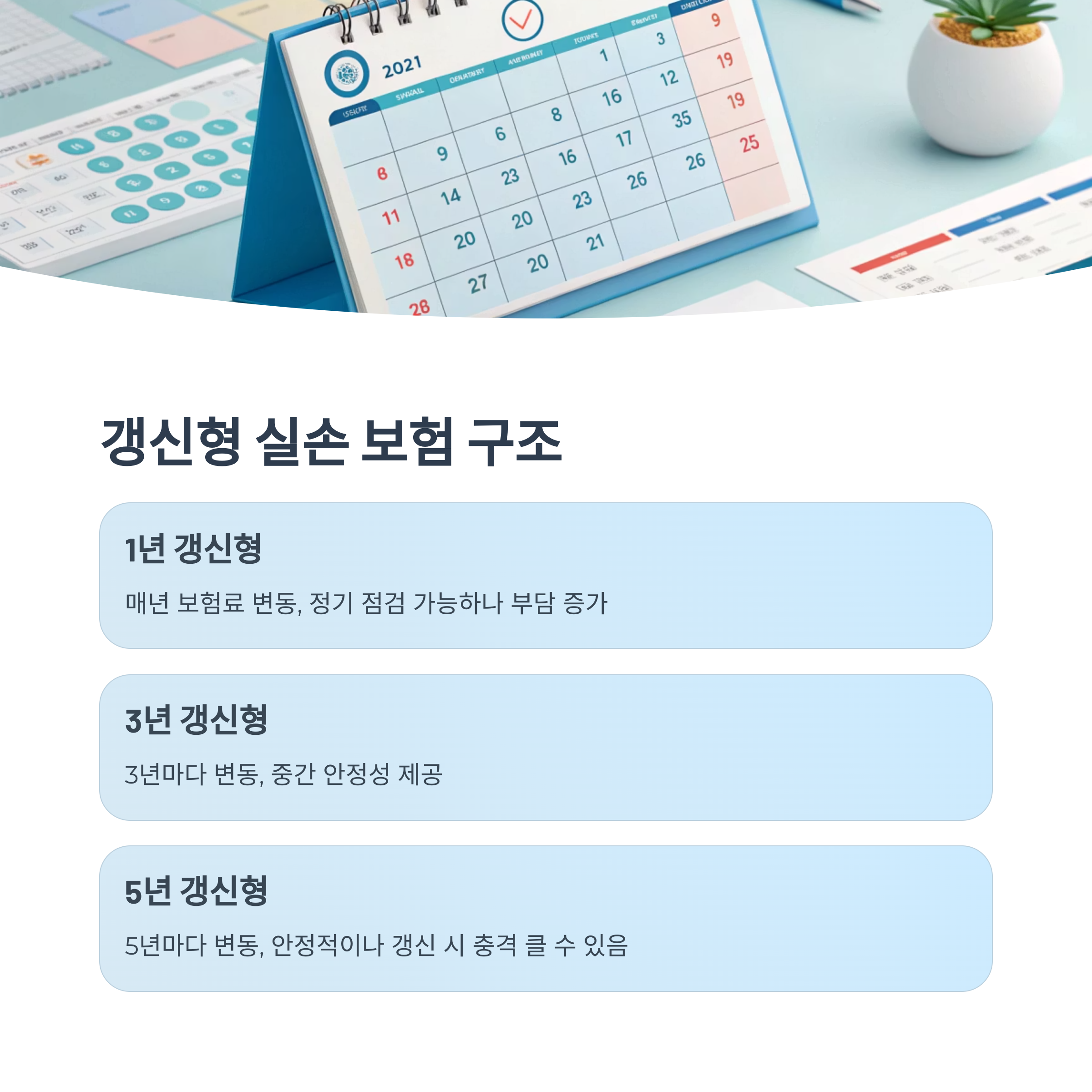 대부분의 실손 보험은 '갱신형'이에요. 다시 말해, 일정 주기마다 보험료가 조정되거나 보장 내용이 변경될 수 있는 구조라는 뜻이에요. 일반적으로 실손 보험은 1년 갱신형이거나, 3년 또는 5년 갱신형인 경우가 많아요.