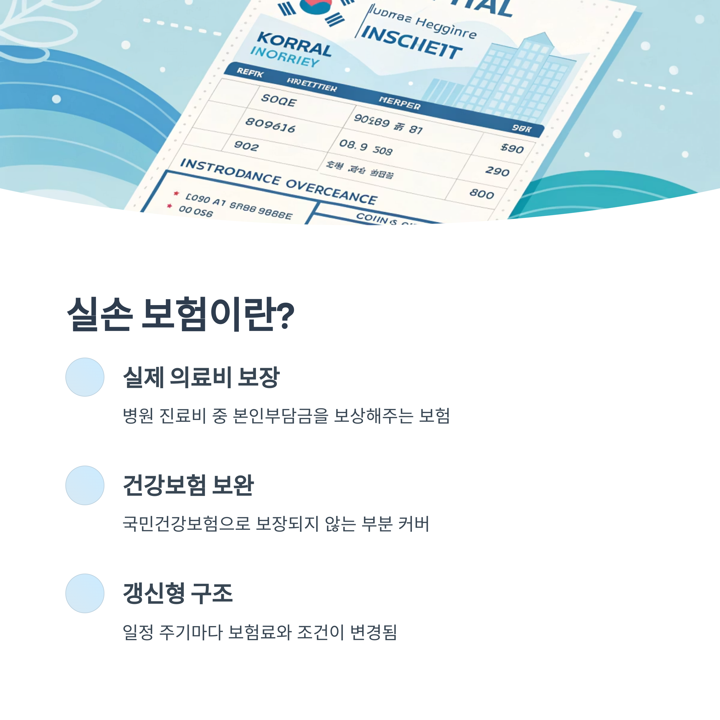 실손 보험은 우리가 일상생활 중에 병원 진료나 치료를 받을 때 실제로 부담한 의료비의 일정 부분을 보장해주는 보험이에요. 국민 건강보험으로 보장되지 않는 본인부담금을 보완해주는 역할을 하기 때문에 많은 사람들이 가입하고 있죠.