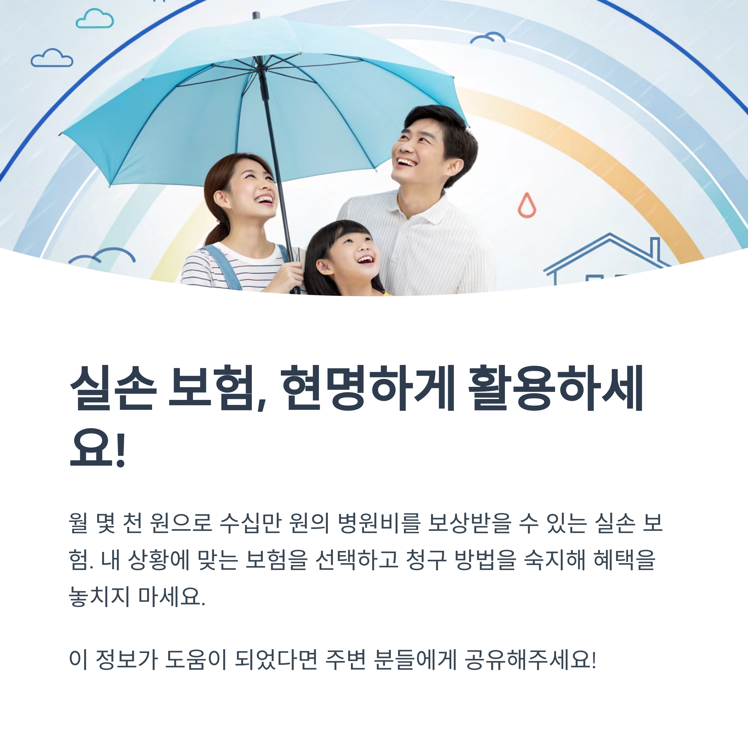 실손 보험은 진료비나 약값처럼 직접 지불한 비용을 보상받을 수 있는 구조예요. 보험의 종류는 많지만, 실손 보험은 '실제로 손해 본 만큼 돌려받는다'는 점에서 가장 현실적인 도움을 주는 보험이에요.