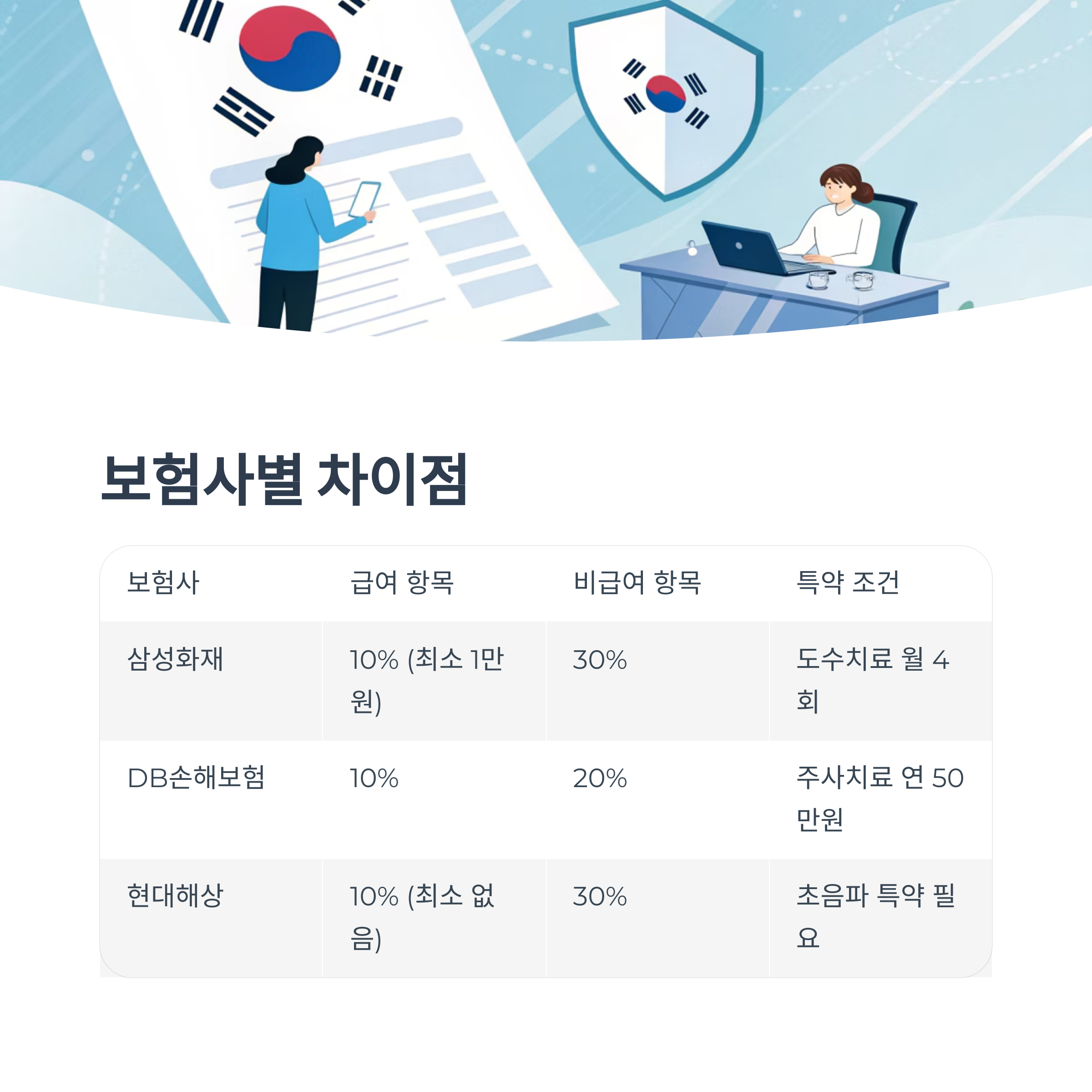 | 보험사 | 급여 항목 | 비급여 항목 | 특약 조건 |