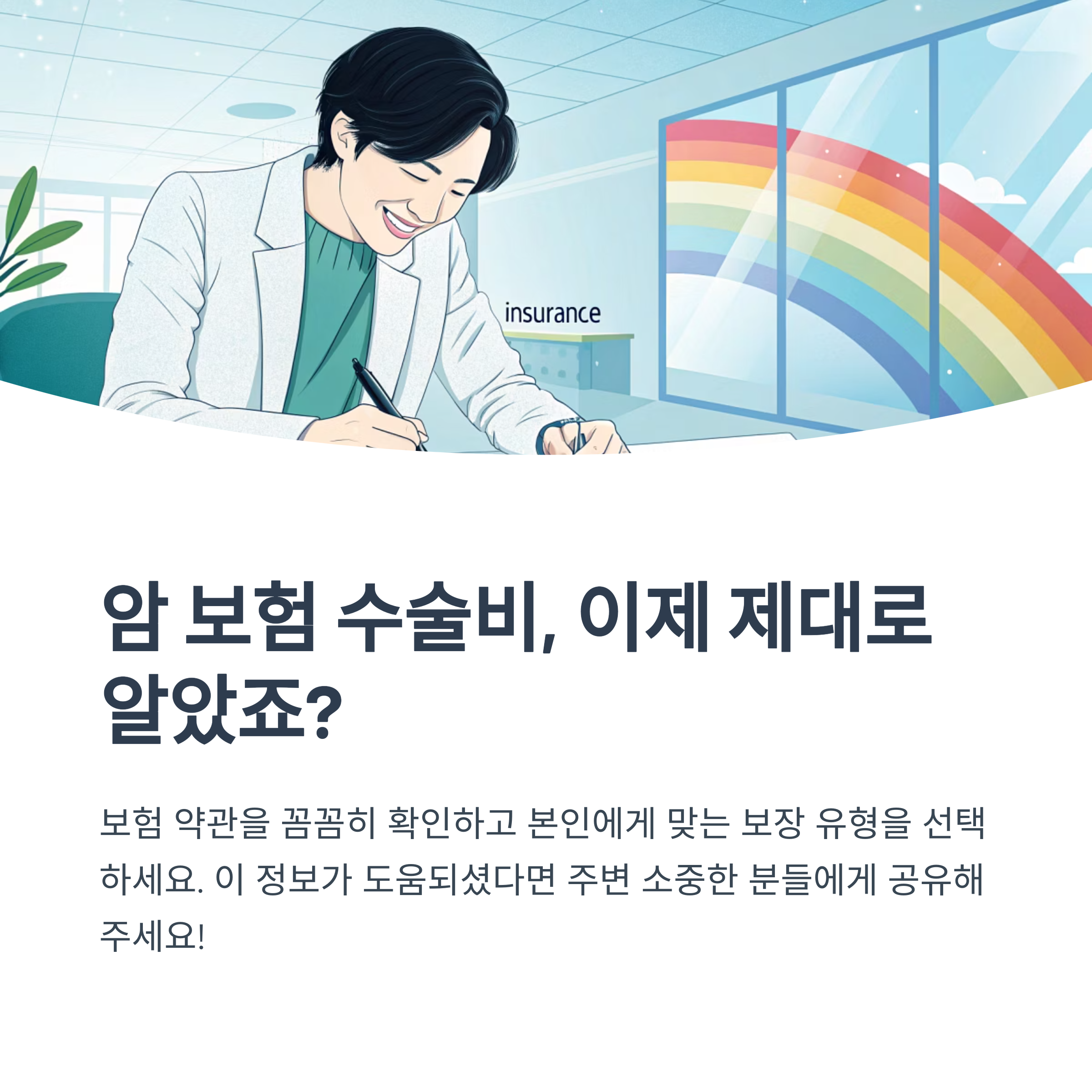 암 보험은 많은 사람들이 미리 대비하는 중요한 금융 수단이에요. 특히 수술비 보장은 암 치료 과정에서 빠질 수 없는 핵심 항목이에요. 하지만 보장 내용이 보험사마다 다르기도 하고, 실제 보장 여부를 혼동하는 경우도 많아서 정확한 이해가 필요해요.