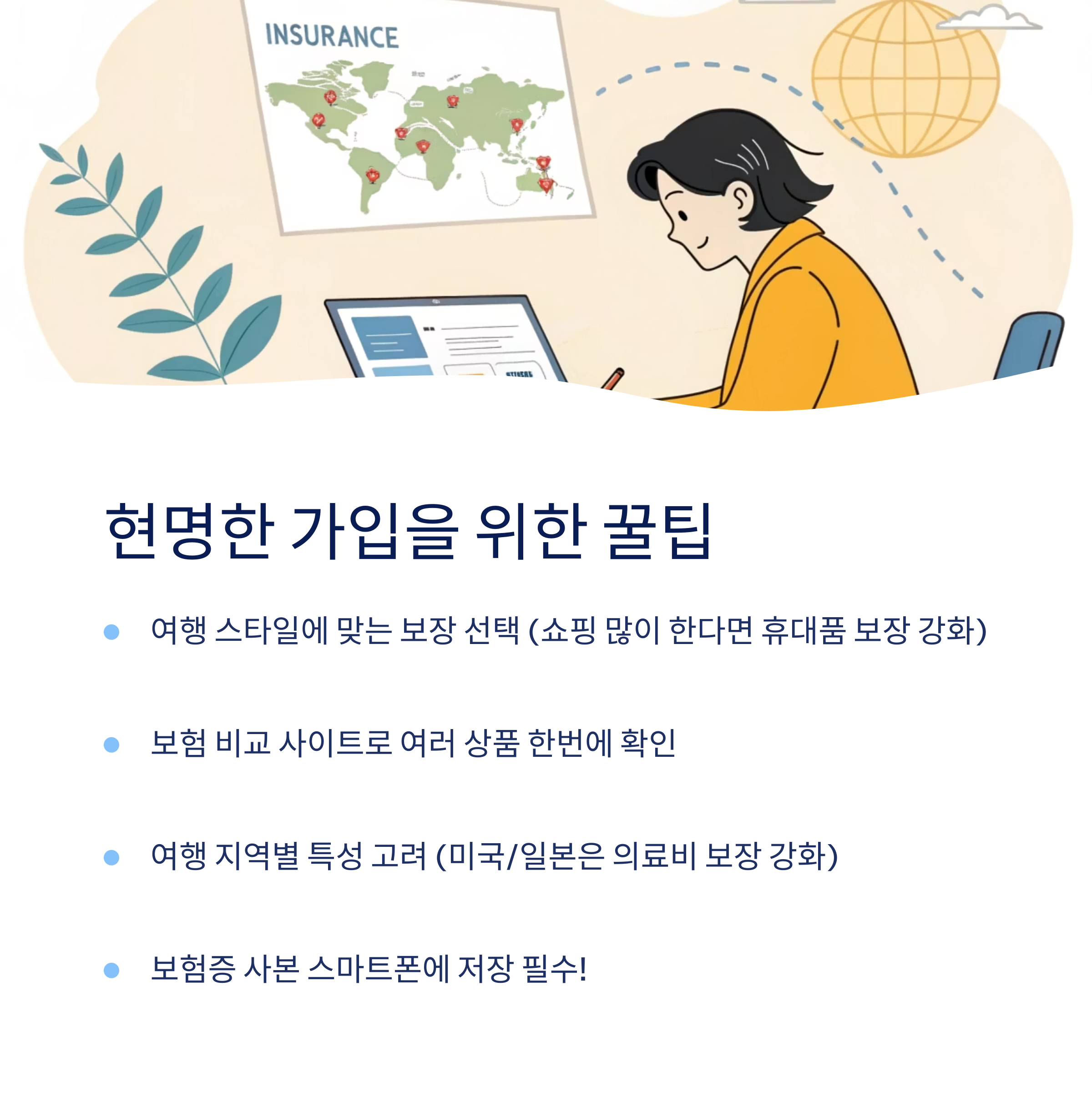 보험 상품은 다양하고 복잡해 보여도, 본인의 여행 목적과 일정에 따라 필요한 보장만 체크하면 훨씬 수월하게 선택할 수 있어요. 📌