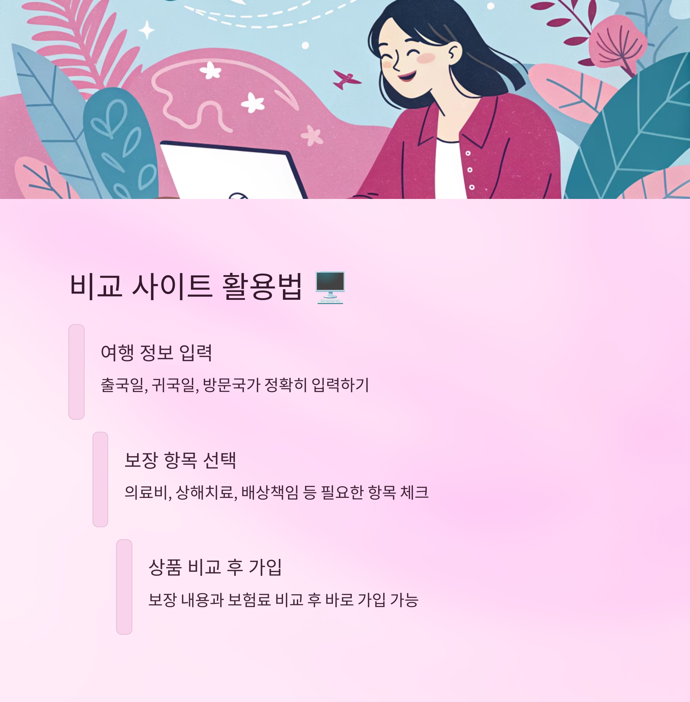 ※ 본 글은 여행자 보험 비교 사이트의 일반적인 활용법을 소개한 정보 제공용 콘텐츠입니다. 실제 가입 전에는 반드시 해당 보험사 공식 약관을 확인하고 전문가의 상담을 받는 것을 권장드려요.