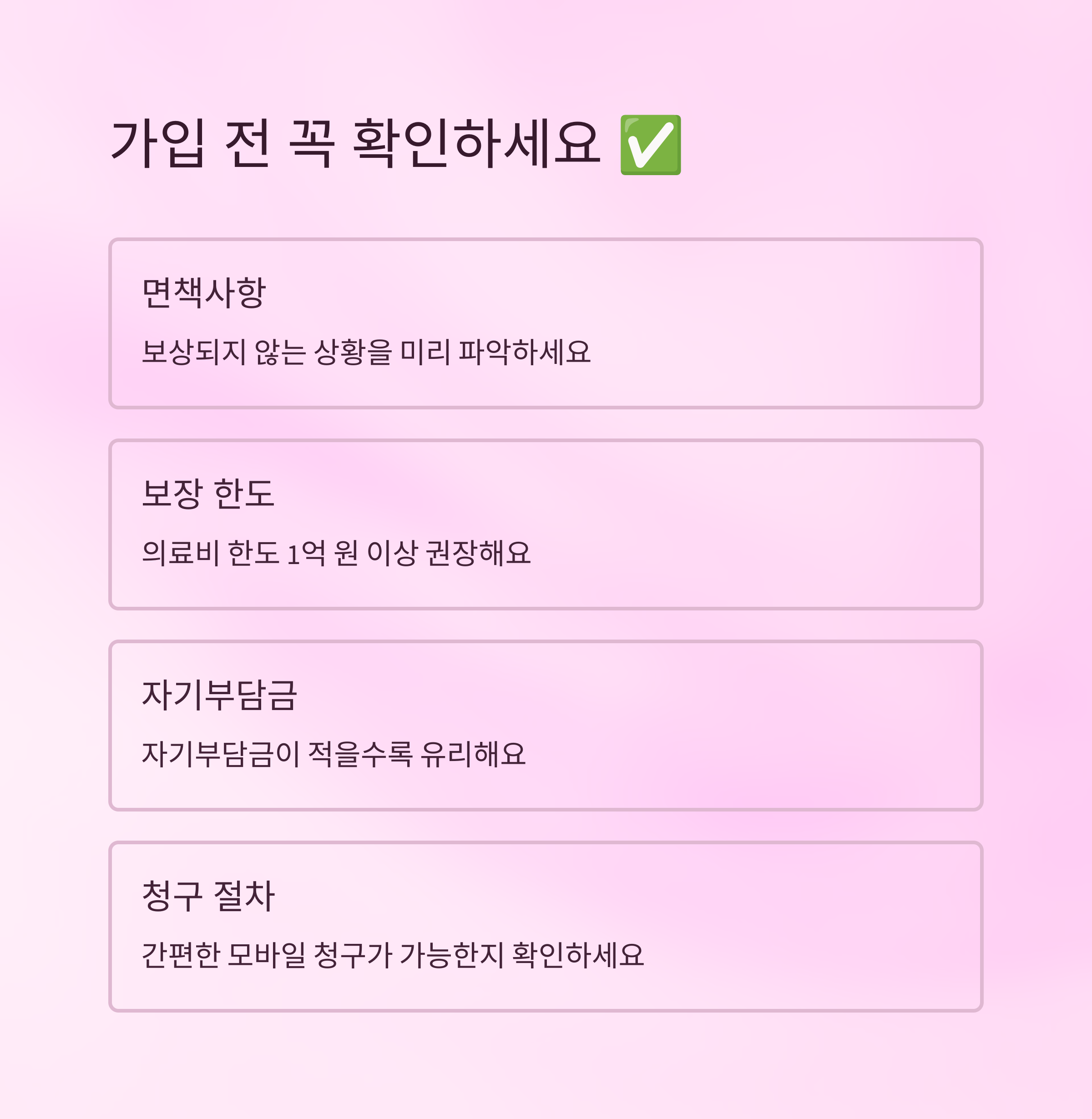 마지막으로는 보상 청구 절차 예요. 복잡하면 보험금 청구 자체를 포기하게 되는 경우도 있어요. 서류가 간단하고 모바일로 청구 가능한 상품을 선택하면 나중에 편리해요. 보장 범위는 넓고, 절차는 간단한 게 제일 좋아요. 😉