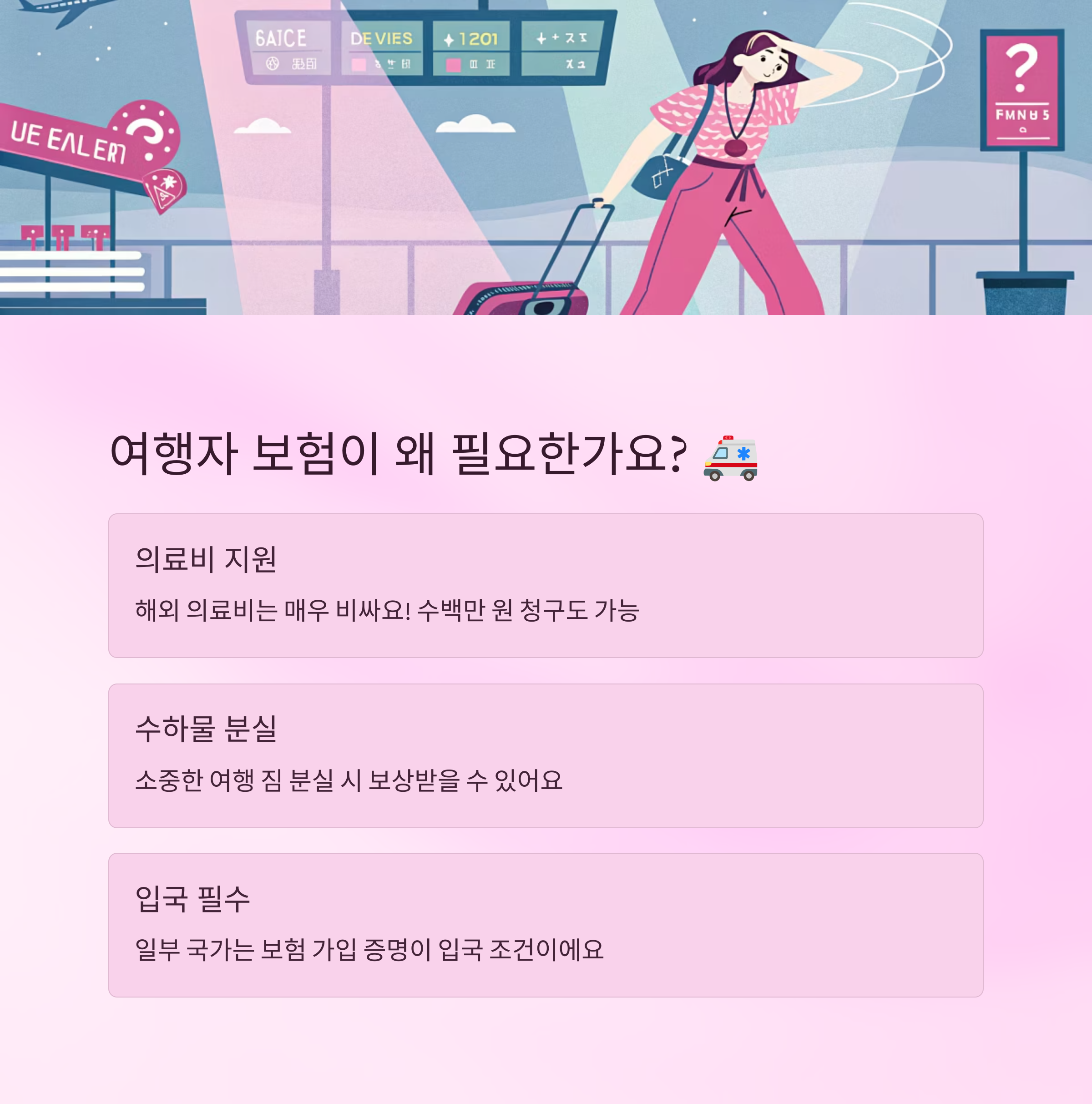 여행을 떠날 때 빠질 수 없는 준비물이 바로 여행자 보험이에요. 사고나 질병, 수하물 분실 등 예기치 못한 상황에 대비하기 위한 필수 요소죠. 그런데 수많은 보험 상품 중에서 어떤 걸 선택해야 할지 막막할 수 있어요.