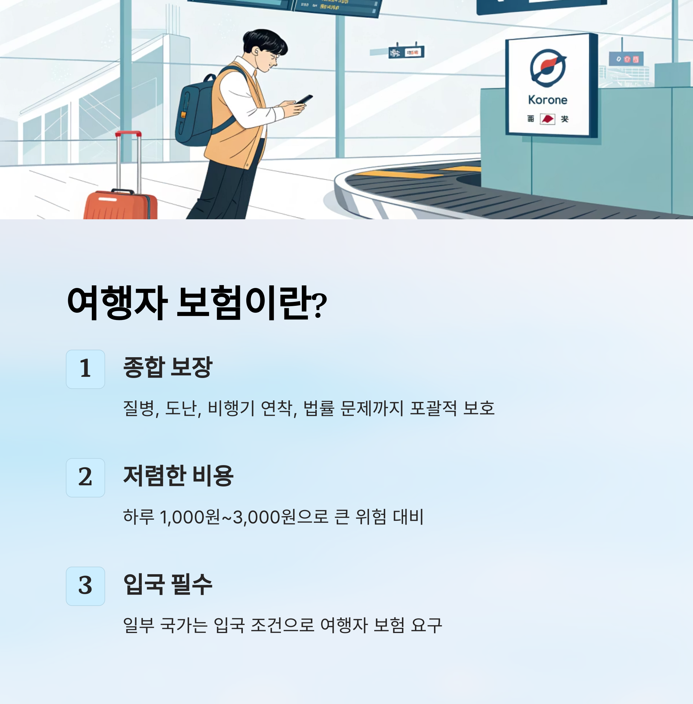 여행자 보험은 여행 중 예기치 못한 사고나 질병, 도난 등의 위험에 대비하기 위해 가입하는 보험이에요. 단순히 병원비만 보장해주는 게 아니라, 소지품 분실, 비행기 연착, 법률 문제까지도 포괄하는 종합 보장이 가능해요. 해외여행은 국내와 환경이 다르고, 의료비용이나 제도도 크게 다르기 때문에 작은 사고도 큰 부담으로 다가올 수 있어요.