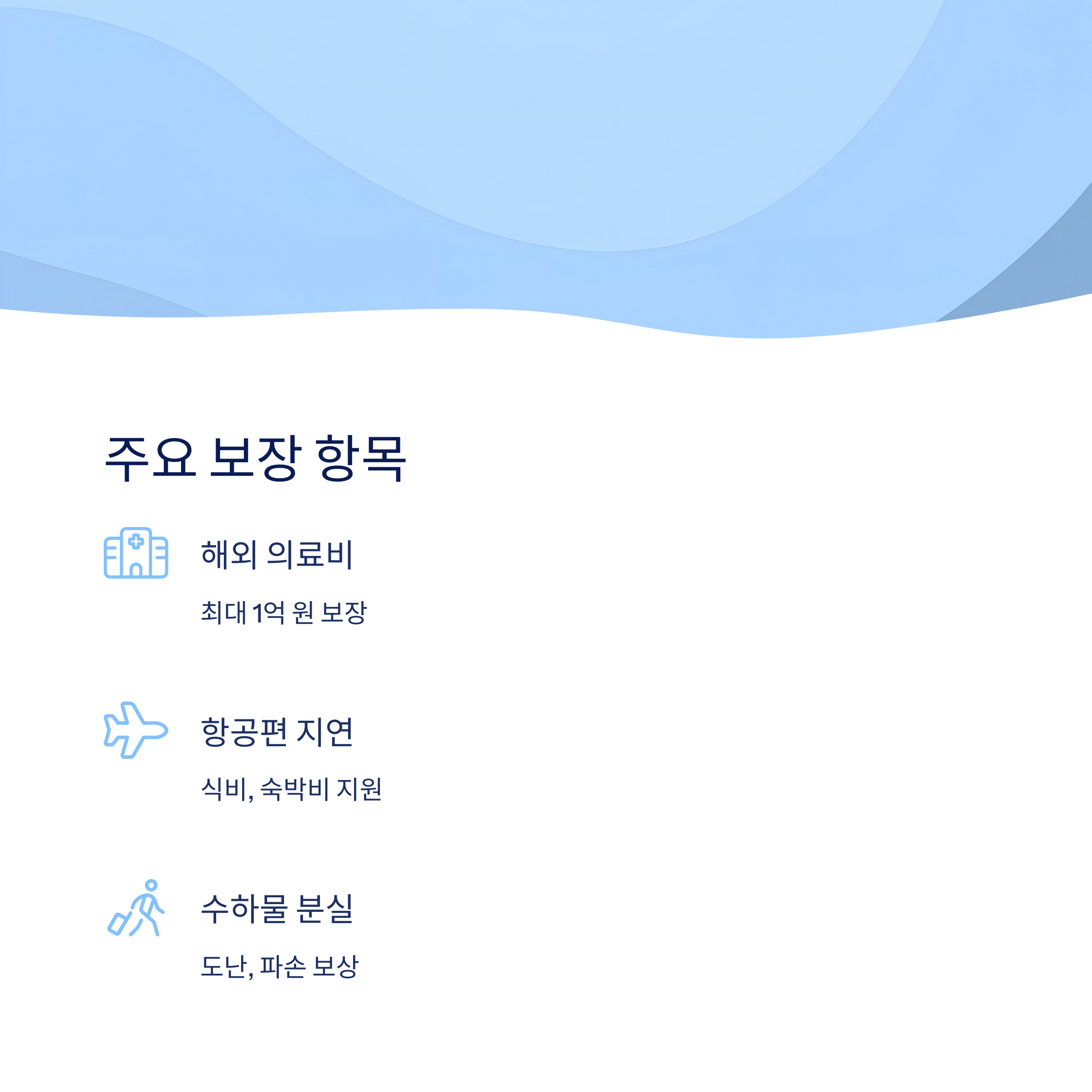 세 번째는 수하물 분실 및 파손이에요. 체크인한 가방이 목적지에 도착하지 않거나 훼손된 경우를 위한 보장이에요. 이 보장은 실제 후기를 보면 자주 언급되는 항목 중 하나예요. 보험이 없다면 자기 부담으로 감당해야 하는 비용이 적지 않거든요.
