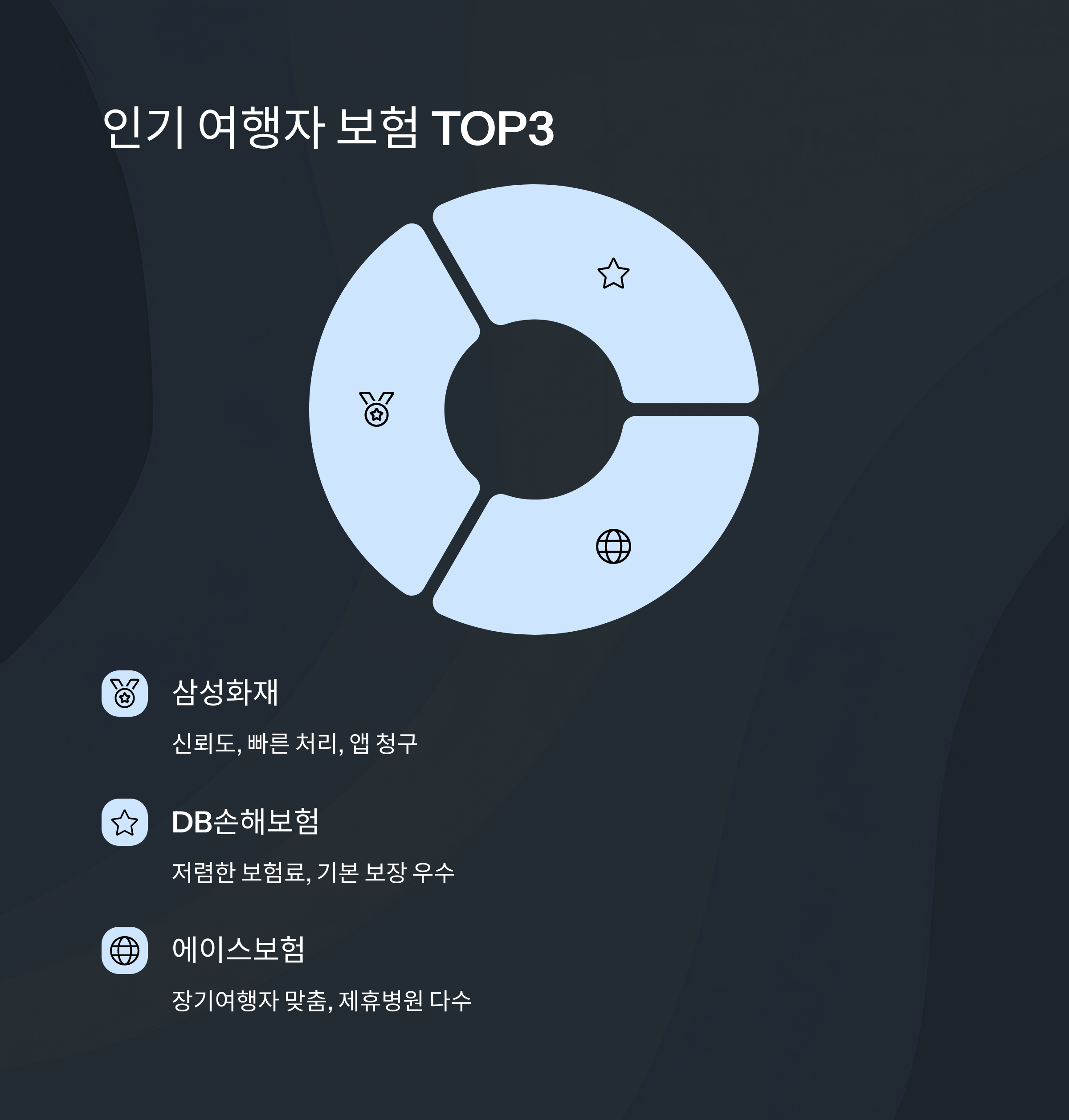 | 2위 | DB손해보험 | 스마트해외여행자보험 | 저렴한 보험료, 기본 보장 우수 | 4.6/5.0 |