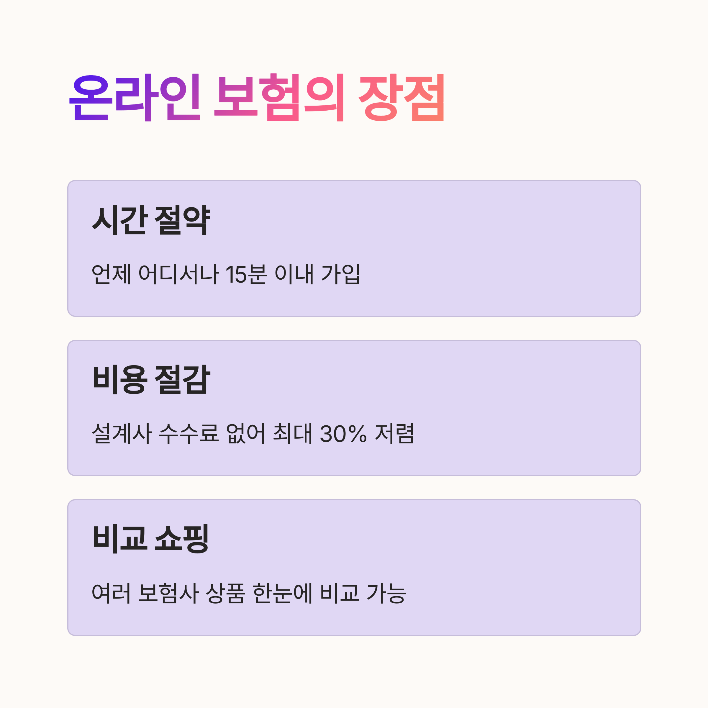 보험료 측면에서도 온라인은 유리해요. 설계사 수수료가 포함되지 않기 때문에 일반적으로 동일 조건의 상품일 경우 오프라인 대비 저렴한 편이에요. 특히 정기보험이나 자동차 보험의 경우 이 차이가 확연해요.