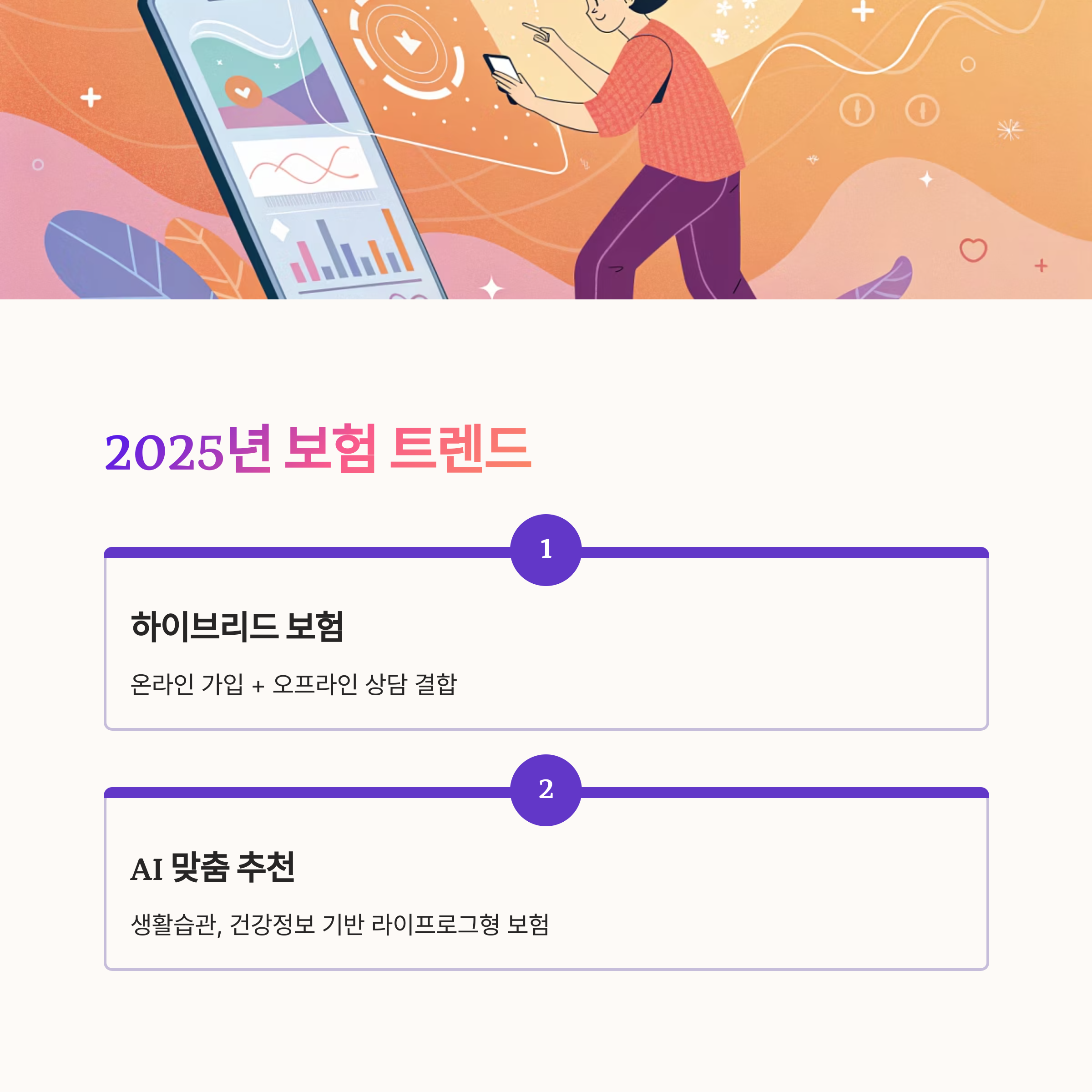 📈 2025년에는 ‘하이브리드 보험’이 주요 키워드로 자리잡을 전망이에요. 이는 온라인과 오프라인의 장점을 결합한 방식으로, 가입은 온라인에서 하고, 상담은 오프라인 설계사를 연결하는 구조예요.