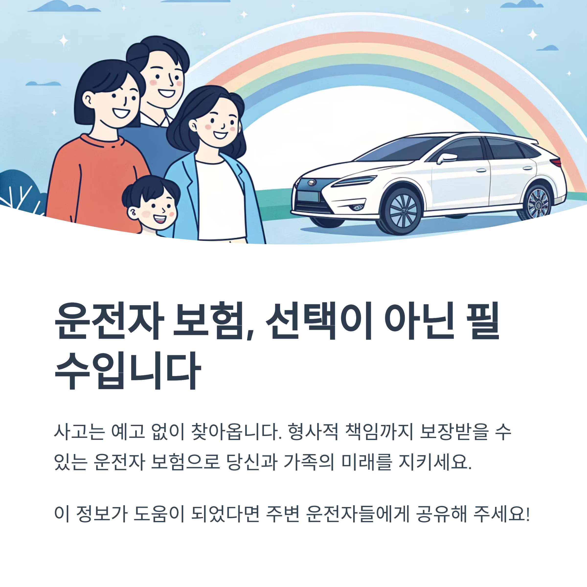 내가 생각했을 때 운전자 보험은 ‘내 잘못이 아니더라도’ 반드시 필요하다고 느꼈어요. 사고는 언제 어디서 일어날지 모르고, 법은 항상 냉정하니까요.