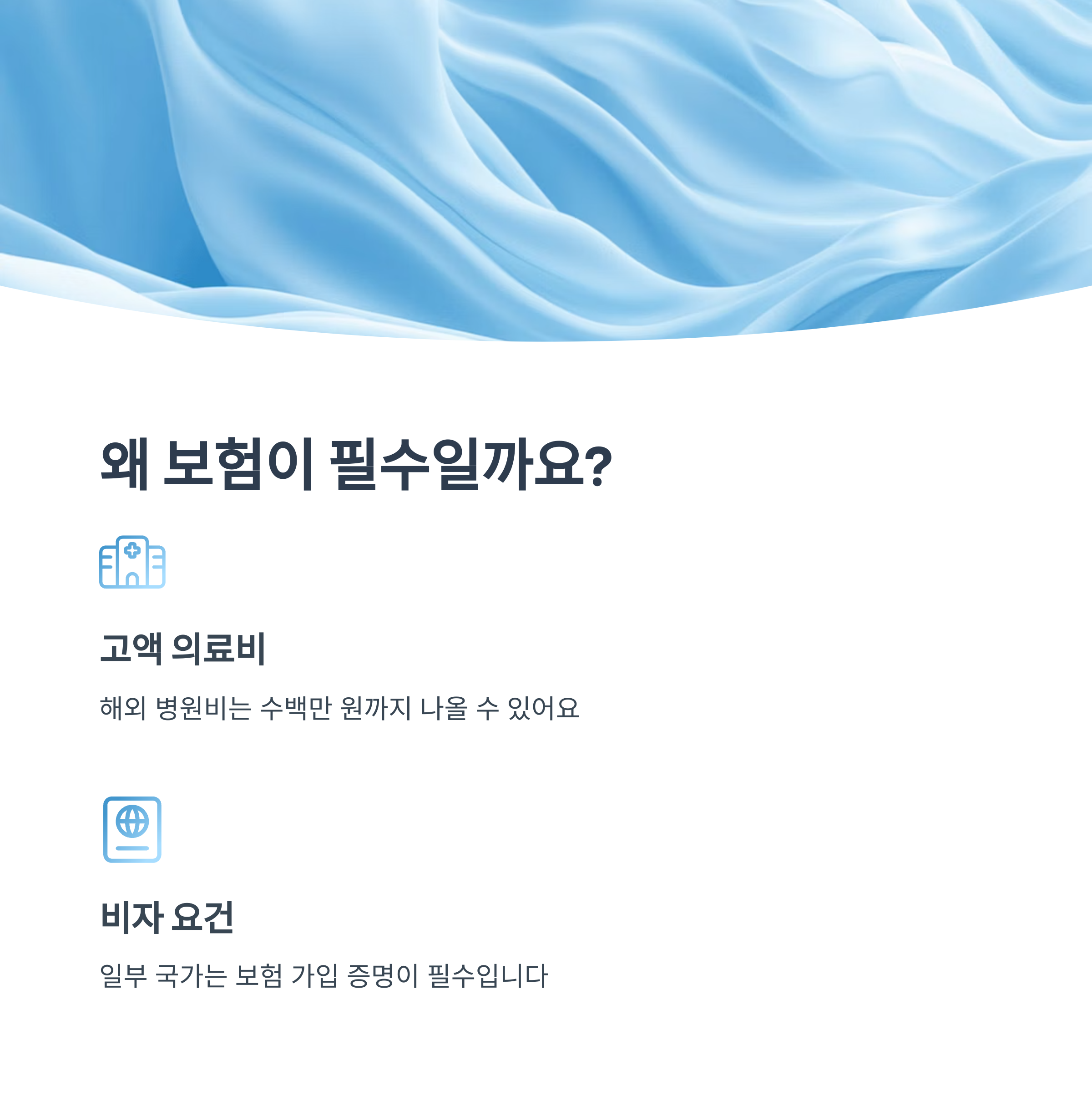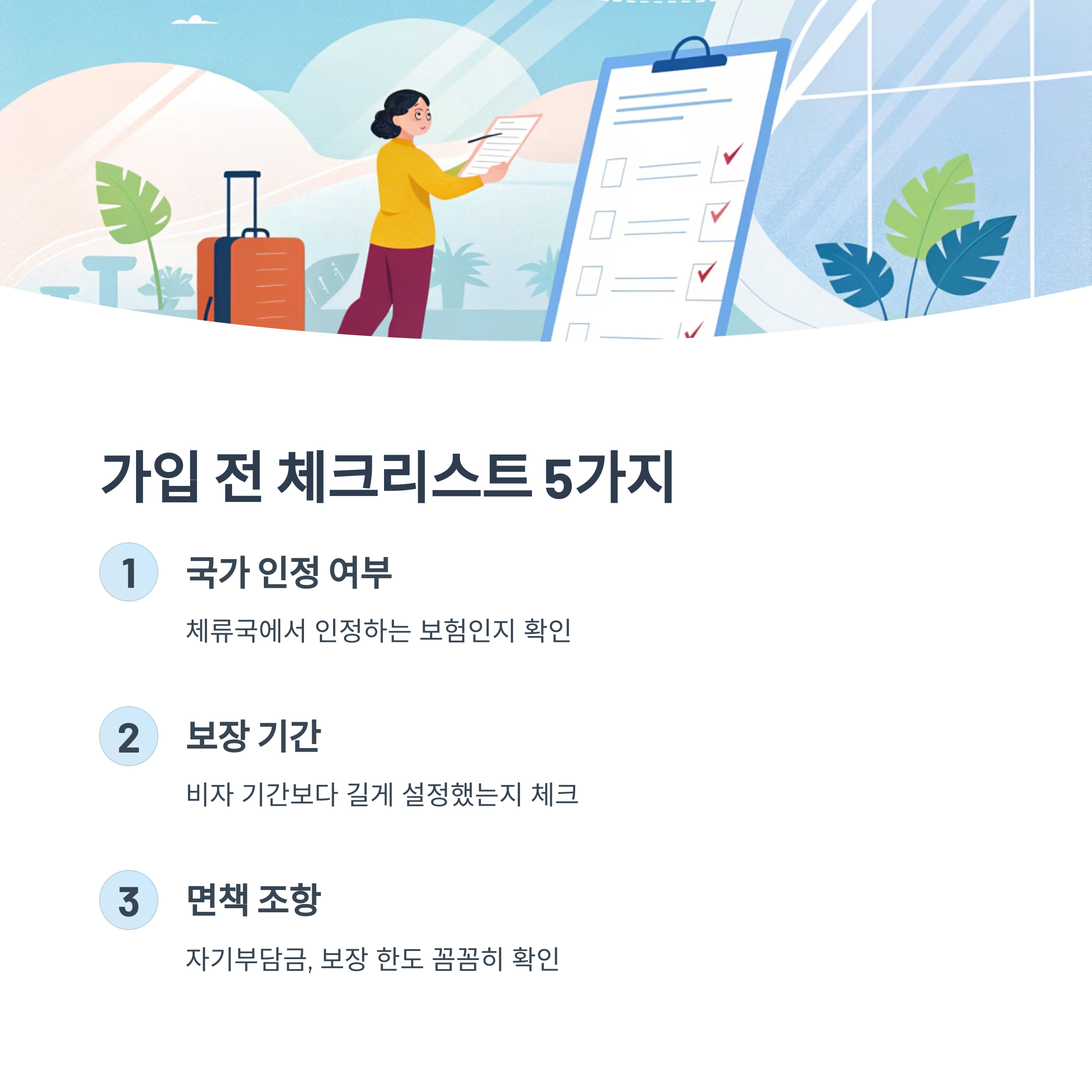보험 가입 전 가장 중요한 건 보장 항목을 꼼꼼히 비교해보는 거예요. '가격만 보고' 선택했다가 나중에 보장이 안 돼서 후회하는 경우가 정말 많거든요. 특히 장기 체류 목적일수록 세부 항목까지 살펴봐야 해요.