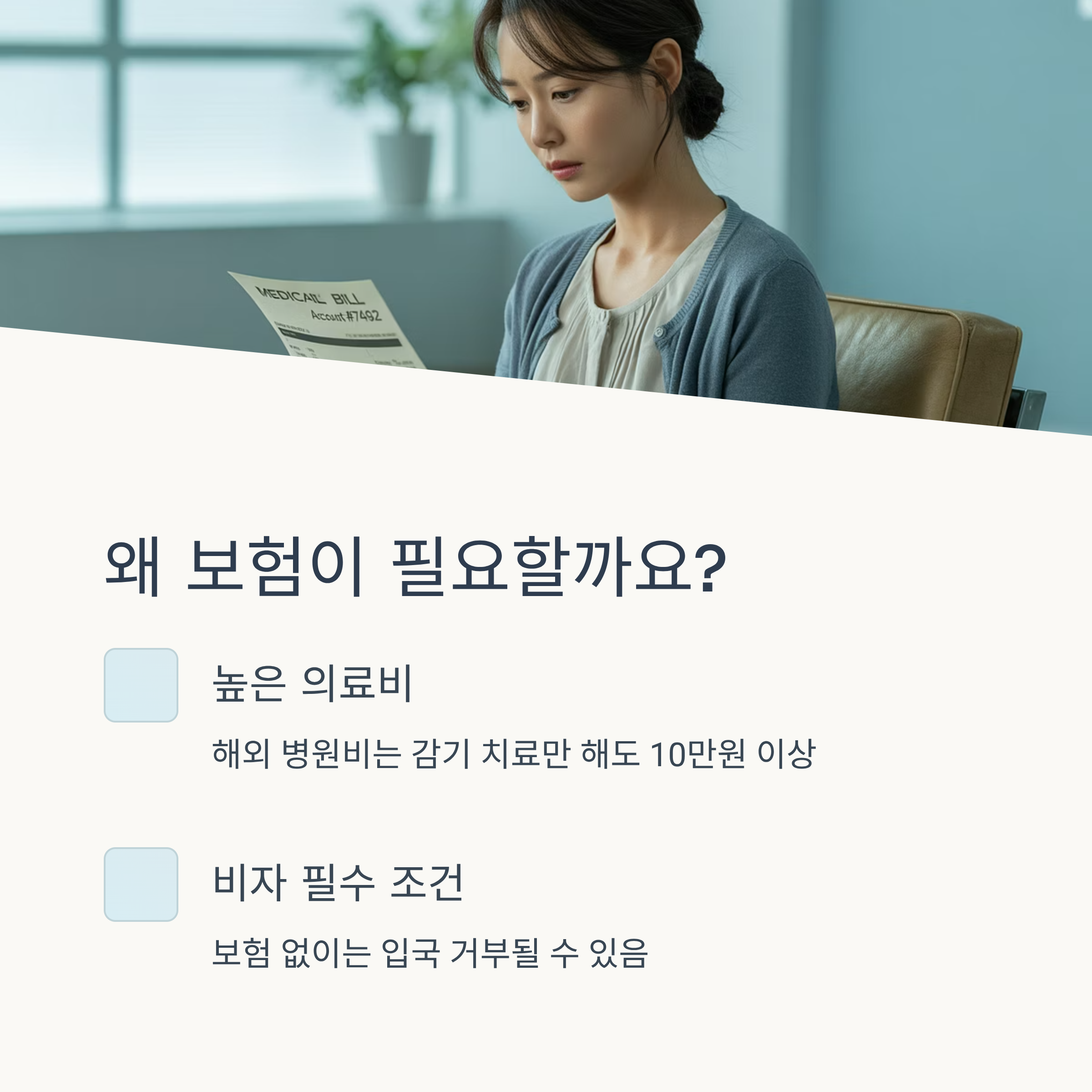 가장 중요한 이유는 바로 '의료비'예요. 예를 들어 호주나 뉴질랜드에서는 감기나 발열로 병원 한 번 방문하는 데만도 10만 원 넘게 나오는 경우가 있어요. 미국의 경우엔 한 번의 입원 치료로 수백만 원이 청구되기도 하고요.