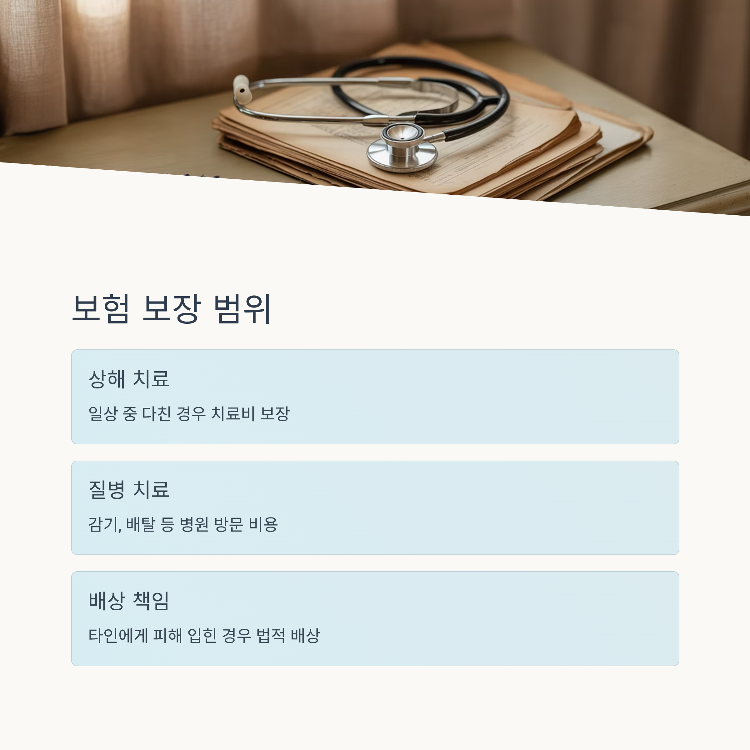 | 상해 보장 | 일상 중 다쳤을 때 치료비 보장 |