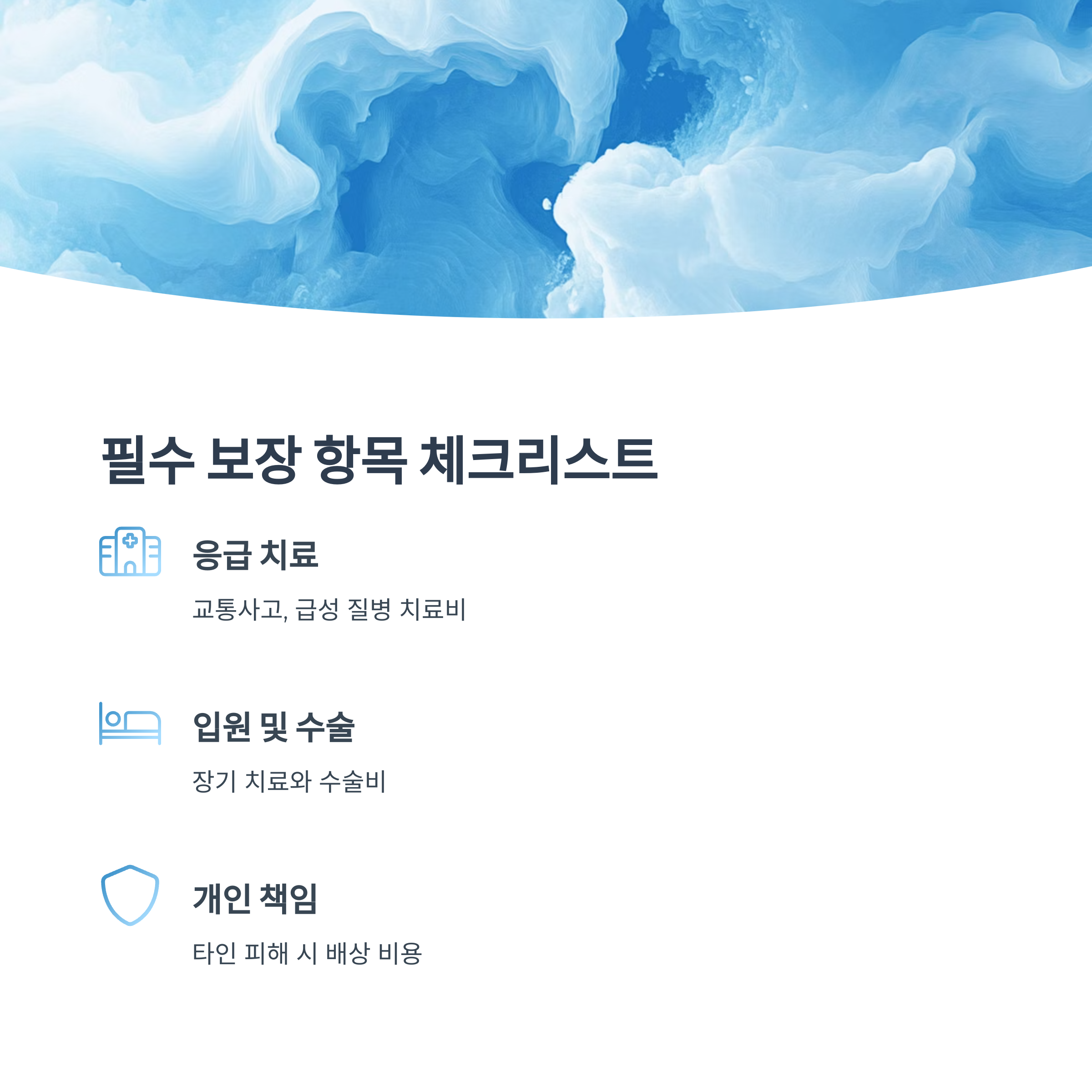 | 응급 치료 | 교통사고, 급성 질병 시 치료비 보장 | ✅ 필수 |