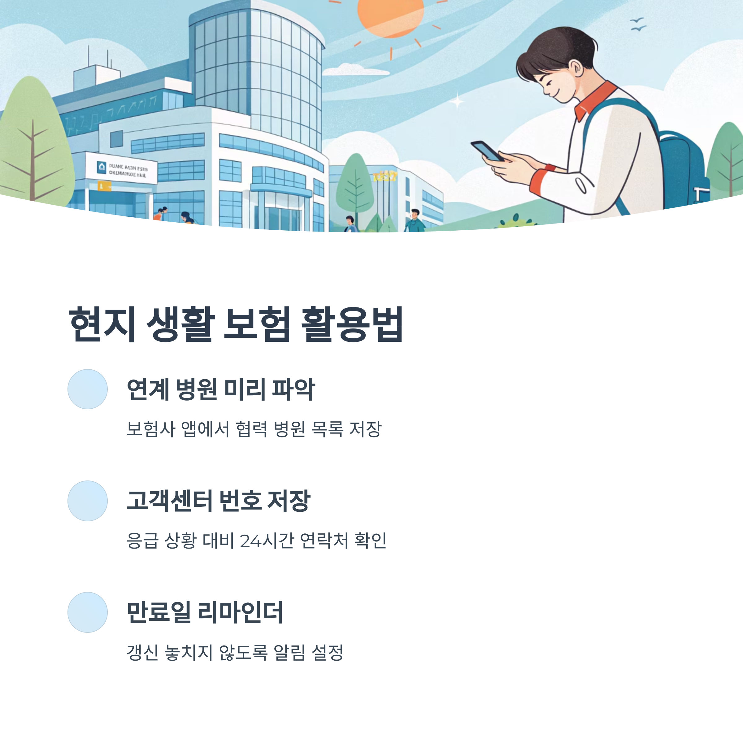 현지에서 보험을 잘 활용하려면, 먼저 연계 병원을 미리 파악해두는 게 중요해요. 보험사 홈페이지나 앱에 들어가면 거주 지역별 협력 병원 목록이 있어요. 그 중 가까운 병원을 저장해두면 유사시 빠르게 방문할 수 있어요.