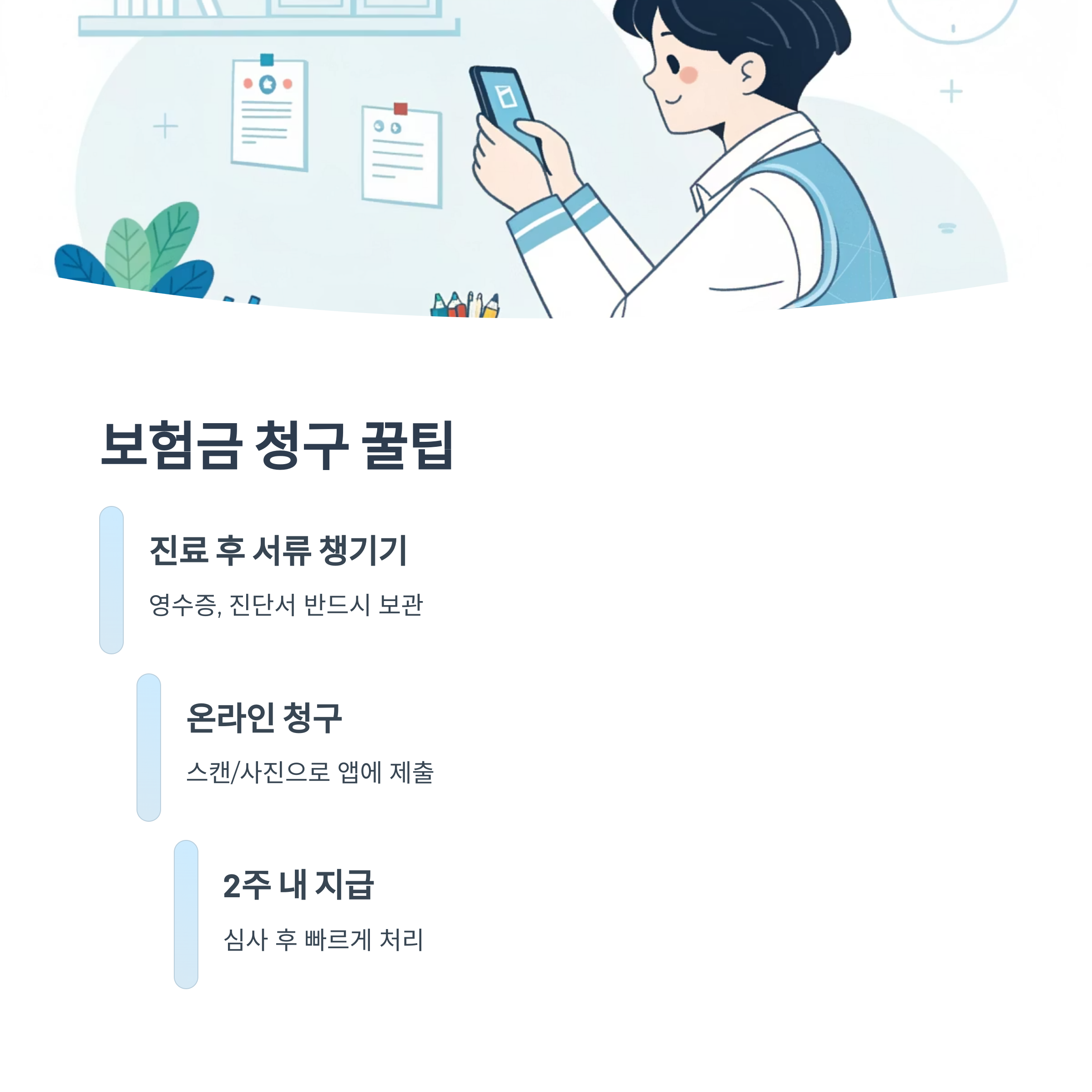 보험금 청구는 생각보다 어렵지 않아요. 대부분의 보험사는 온라인 청구 시스템을 제공하고 있어요. 진료 후 받은 영수증, 진단서, 진료 확인서 등을 스캔하거나 사진으로 찍어서 보험사 사이트나 앱을 통해 제출하면 돼요.