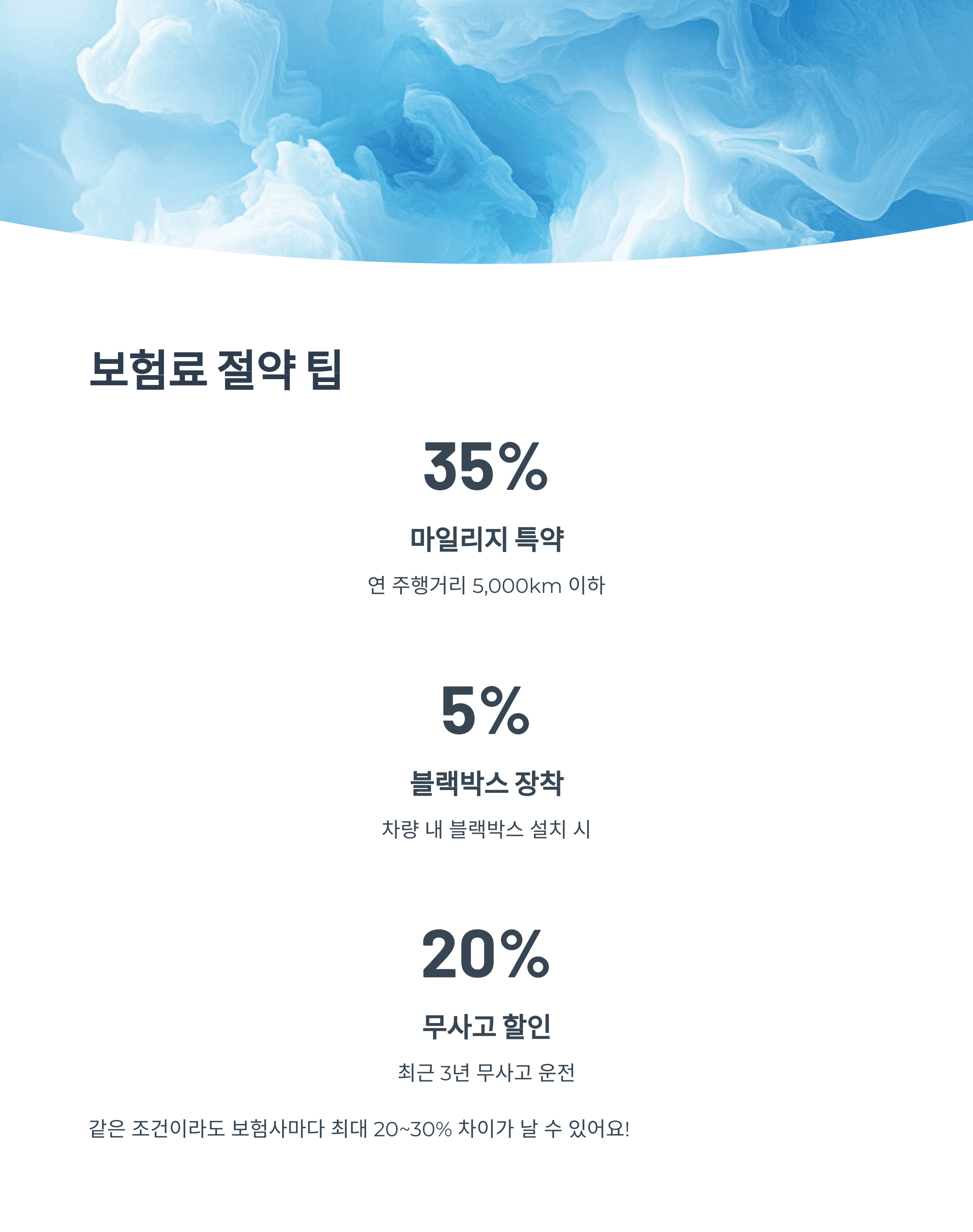 | 마일리지 특약 | 최대 35% | 연 주행거리 5,000km 이하 |