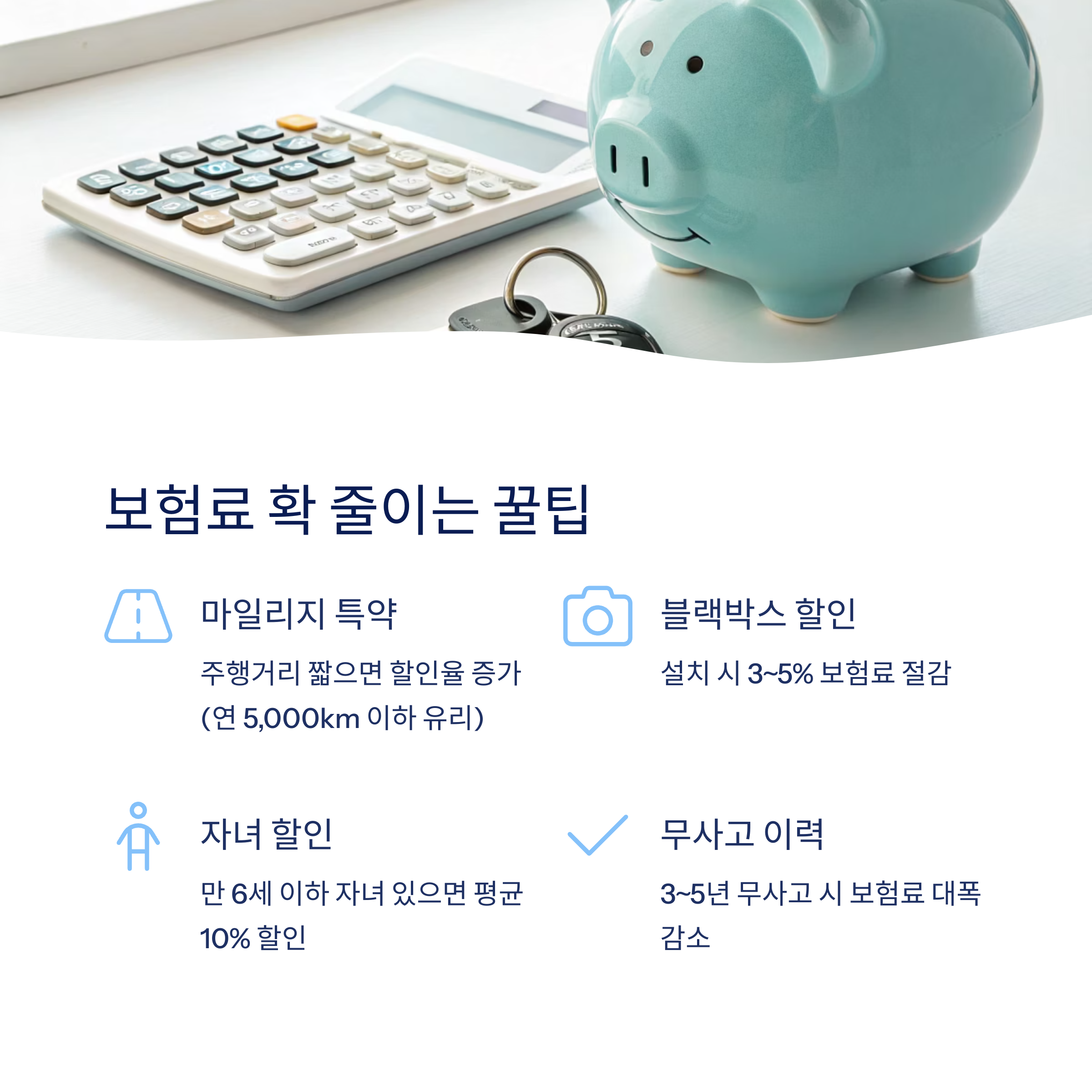 보험료를 절약하려면 먼저 ‘마일리지 특약’을 활용하세요. 주행거리가 짧으면 할인율이 커지기 때문에, 연 5,000km 이하 운전자는 특히 유리하답니다.