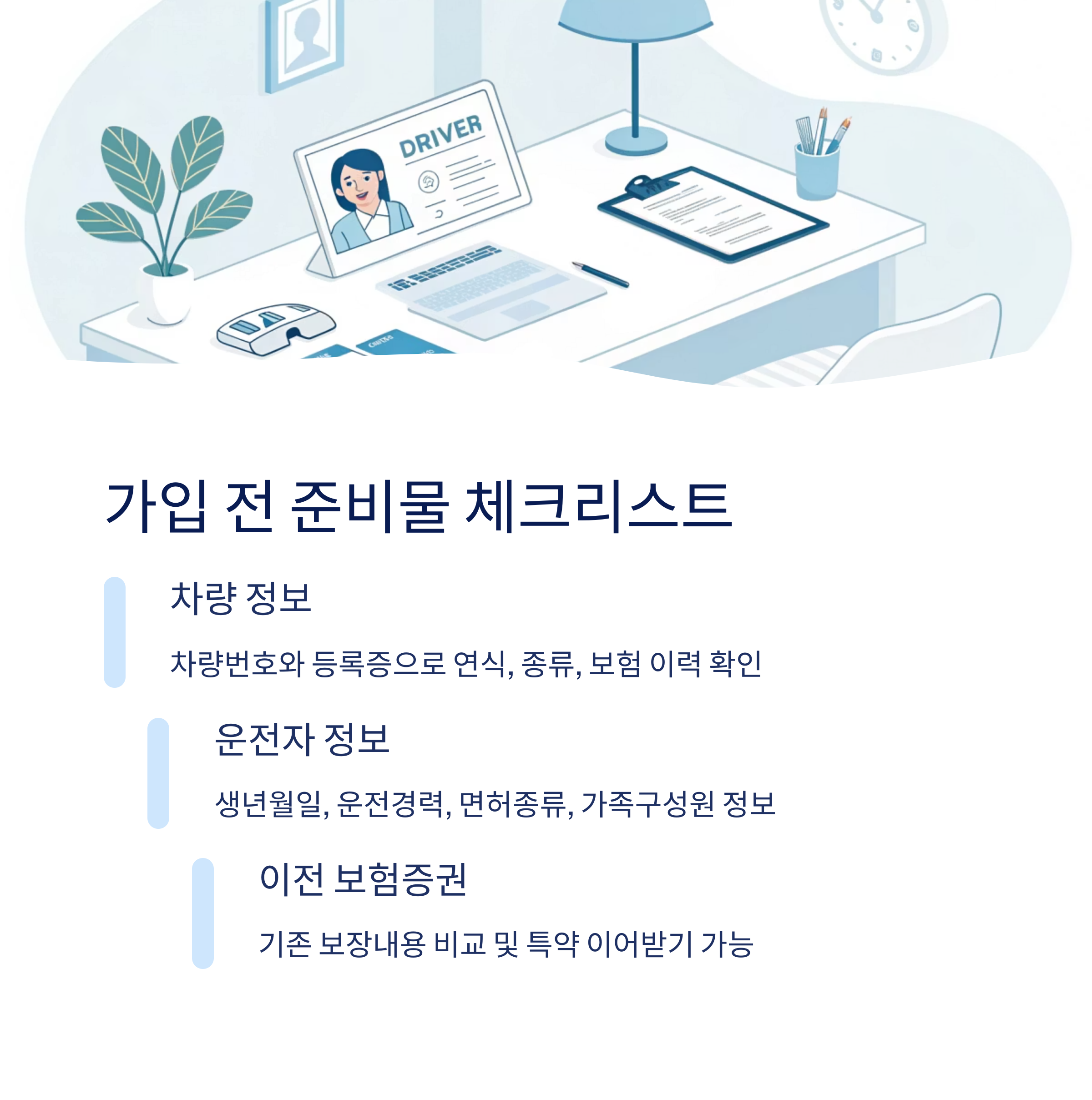 이 모든 정보가 준비되면 실제 견적 비교 시 시간도 단축되고, 조건별 보험료 차이를 보다 정확히 확인할 수 있어요!