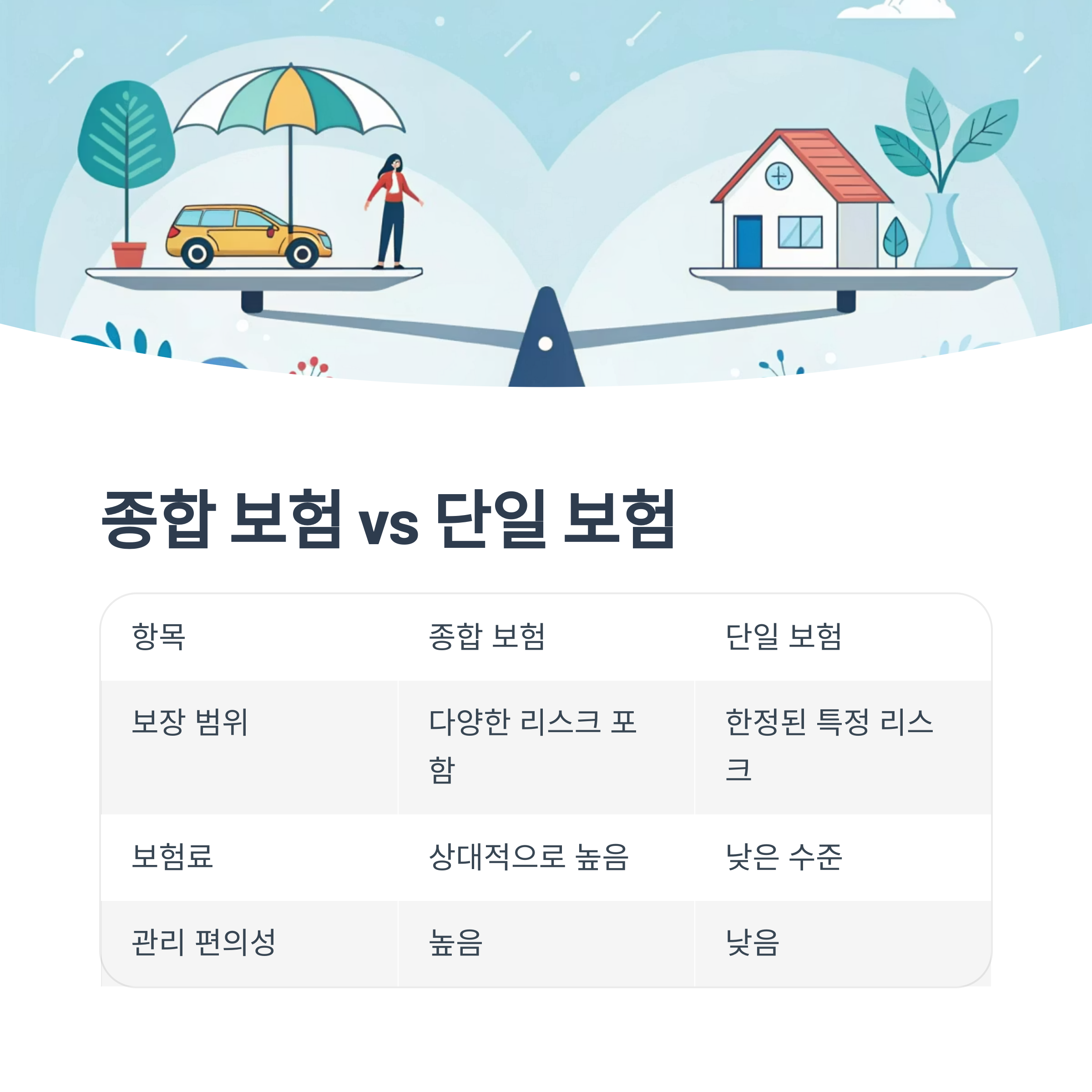 🔎 종합 보험 vs 단일 보험 비교표