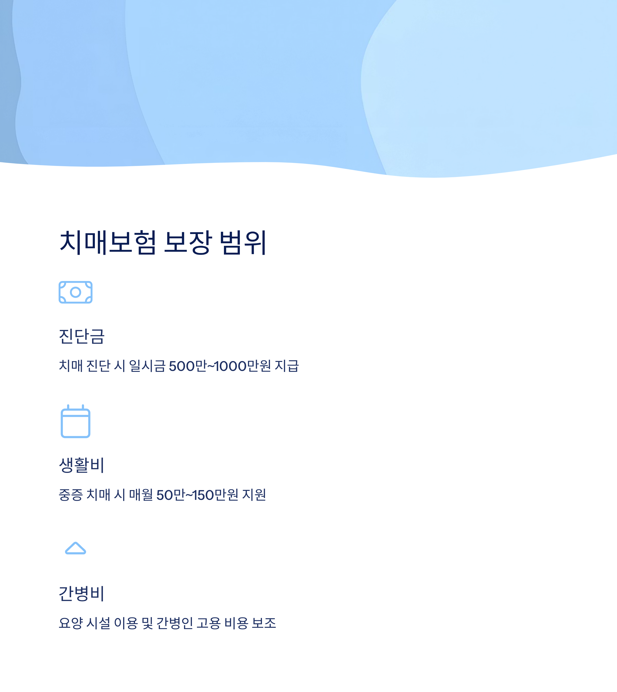 | 생활비 | 중증 치매 시 매월 지급 | 간병 및 생활 지원 |