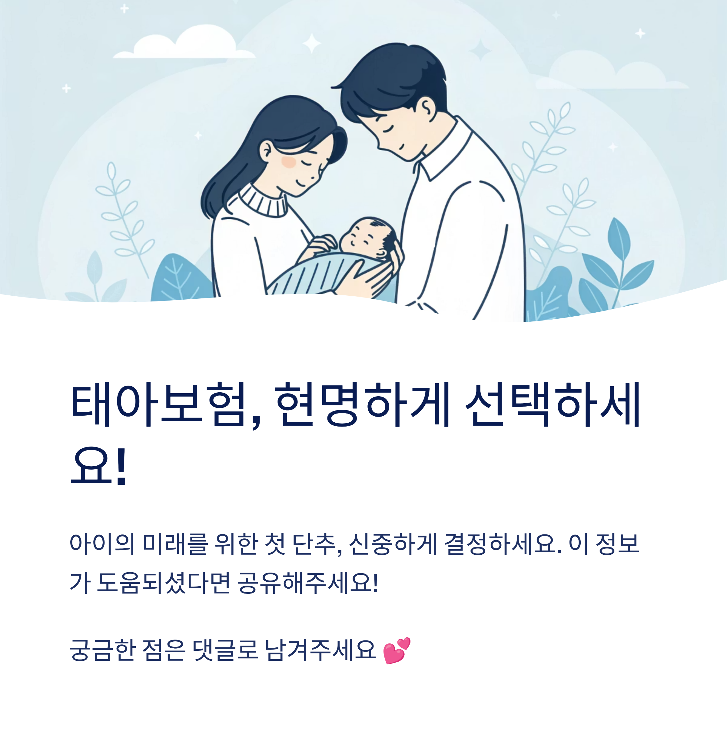 보험은 한 번 가입하면 아이가 성인이 될 때까지 계속 가는 경우가 많기 때문에, 현재보다 미래를 보고 결정하는 것이 중요해요. 재무설계사나 보험 전문가와 충분히 상담한 후 가입하는 걸 추천해요!