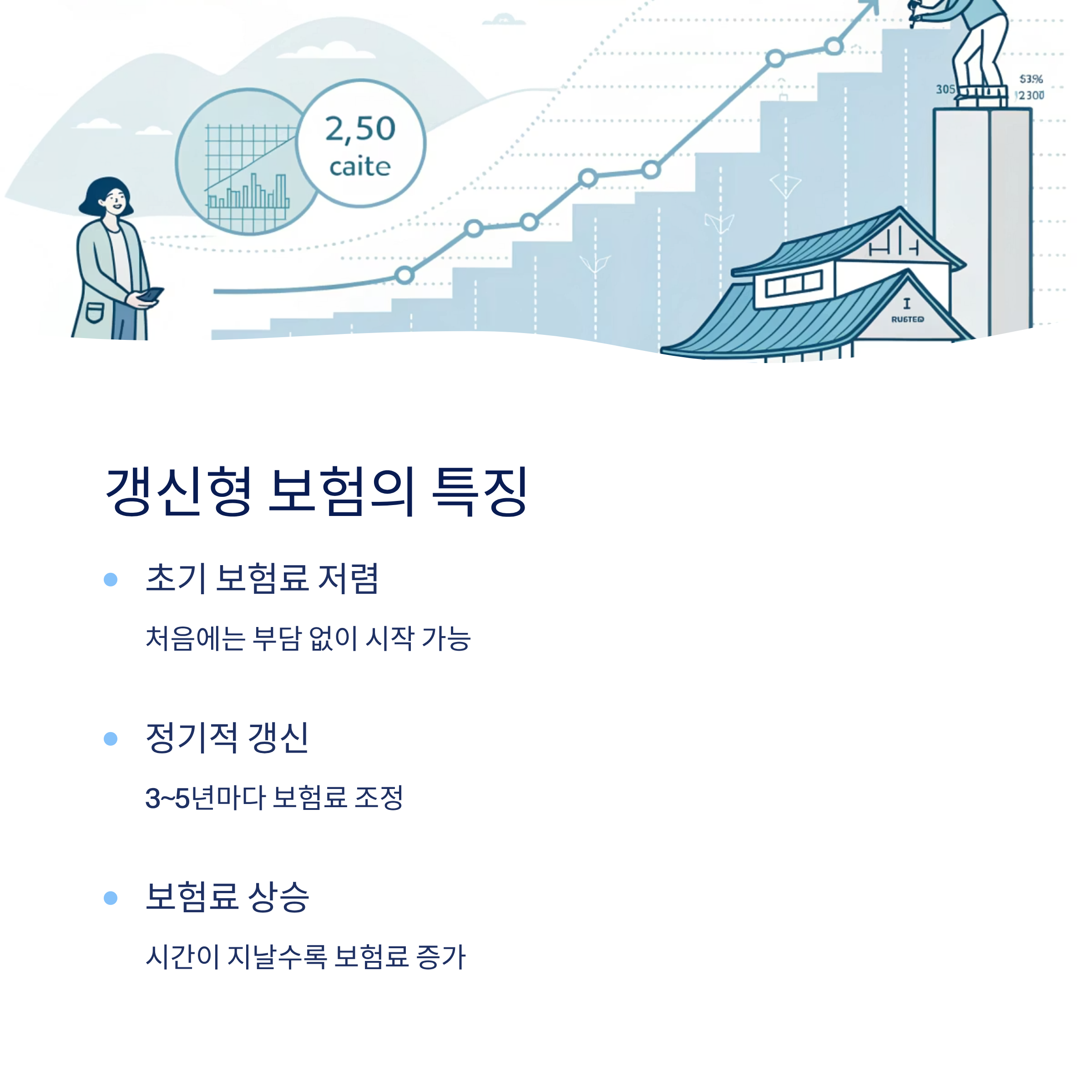 하지만 주의할 점은, 보험료가 매 갱신 시점마다 연령, 위험률 등에 따라 상승할 수 있다는 거예요. 어떤 해에는 갑자기 두 배 이상 오르는 경우도 있거든요. 장기적으로 보면 보험료가 비싸지는 구조라는 점은 꼭 기억해야 해요.
